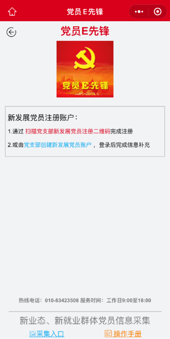 (一)发展党员注册“党员E先锋”小程序