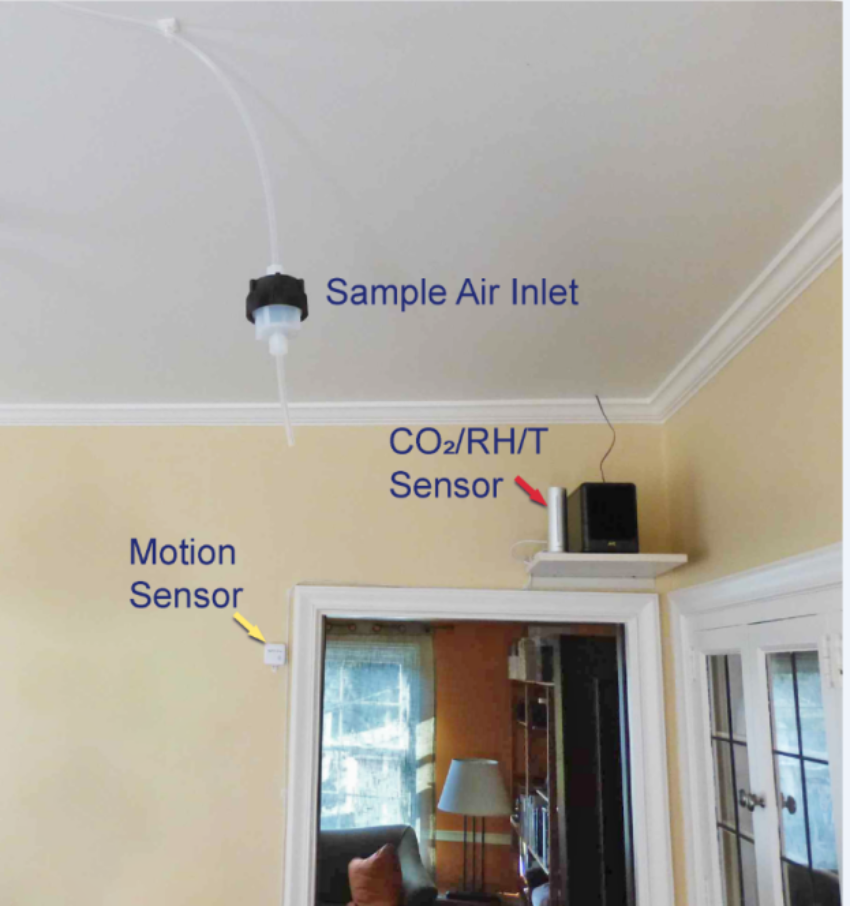 该研究基于对一户住宅中室内空气组分为期8周的在线观测(如图1所示)。该住宅由一对老年夫妇居住,观测期间保持正常生活状态。