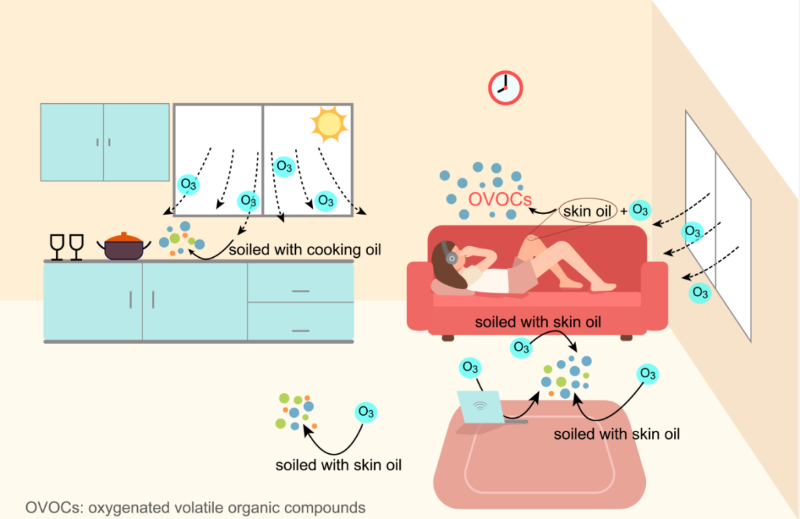 通过对观测数据进行新颖的非靶向分析,该研究发现,即使观测期间臭氧浓度很低,臭氧氧化反应仍对室内空气中的一系列挥发性有机物产生显著贡献。这些有机物包括嗅味阈值极低的壬烯醛、具有刺激性的4-氧戊醛等,可能对人体健康产生不利影响。