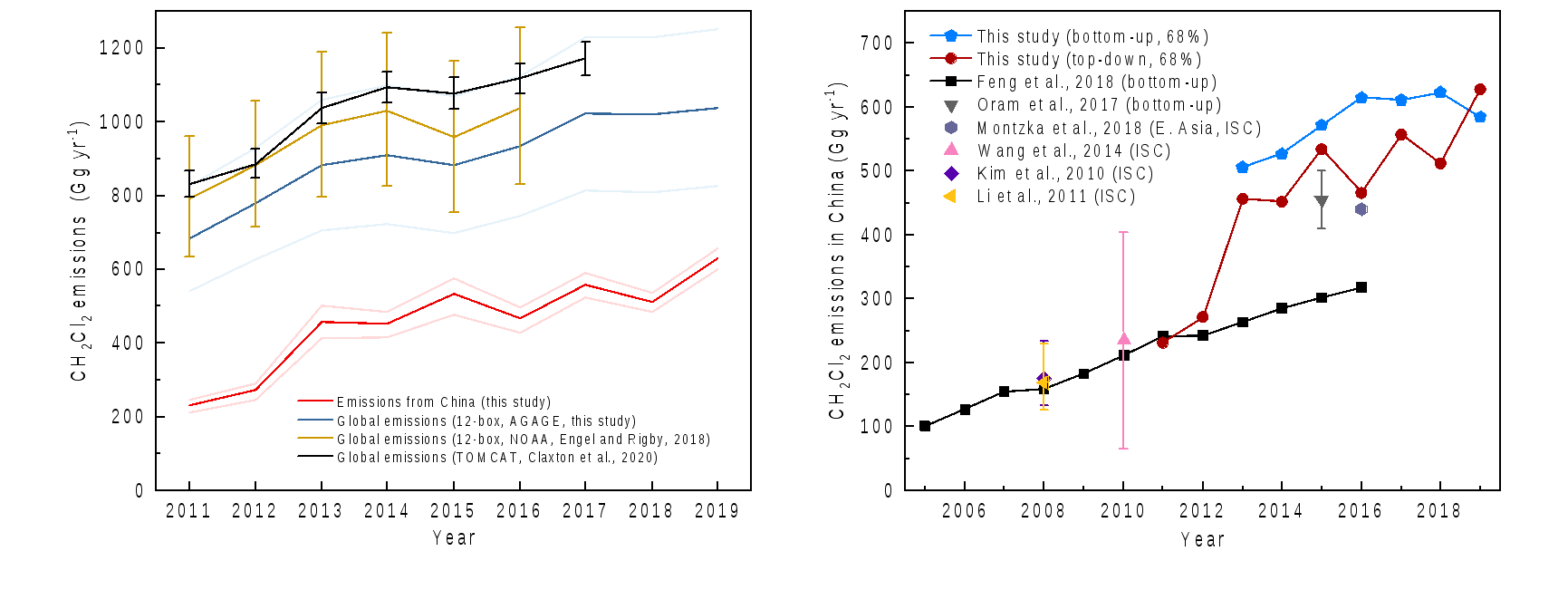 图 全球和中国二氯甲烷排放量