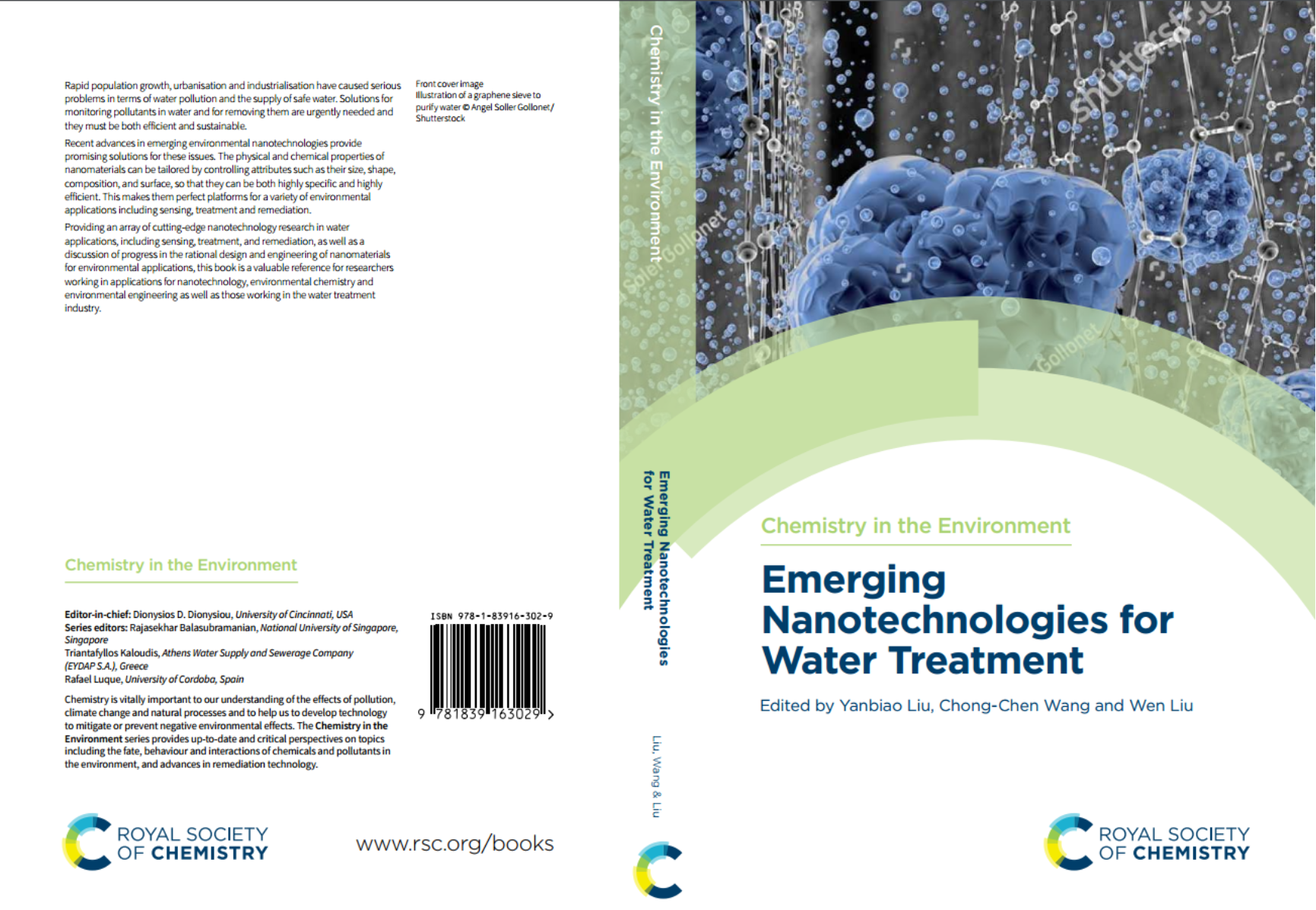 此著作隶属于RSC旗下《Chemistry in the Environment》系列丛书,丛书由美国环境化学和环境纳米技术领域著名学者Dionysios D. Dionysiou教授主编。《Emerging Nanotechnologies for Water Treatment》一书亦受Dionysios D. Dionysiou教授邀请,由东华大学刘艳彪教授、北京建筑大学王崇臣教授和北京大学环境科学与工程学院刘文研究员共同主编。该书同时还邀请了中国、美国、澳大利亚、丹麦、印度等多个国家的学者进行了相关章节撰写。