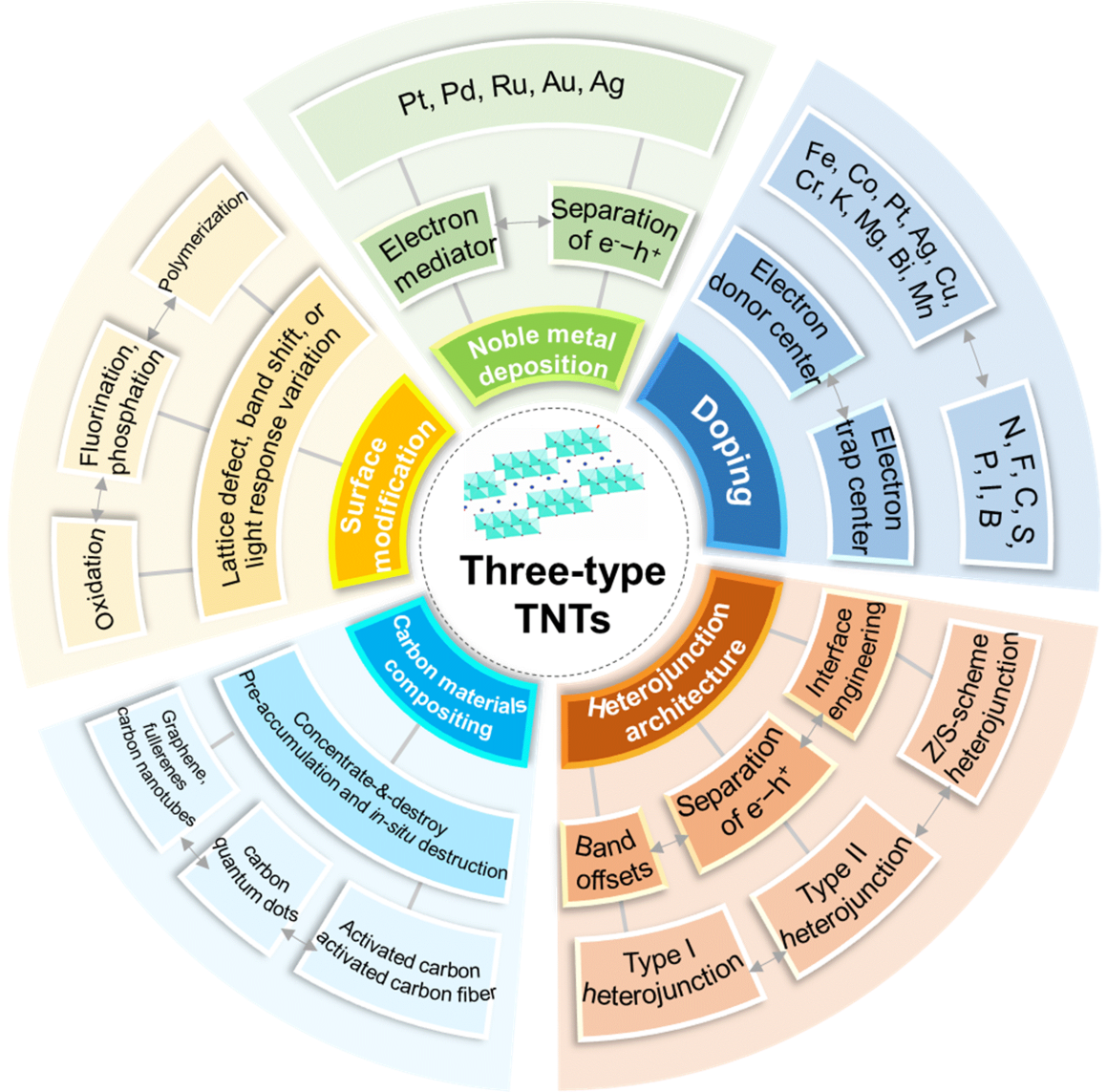 图 2. TNTs 光催化材料改性和功能化策略及原理