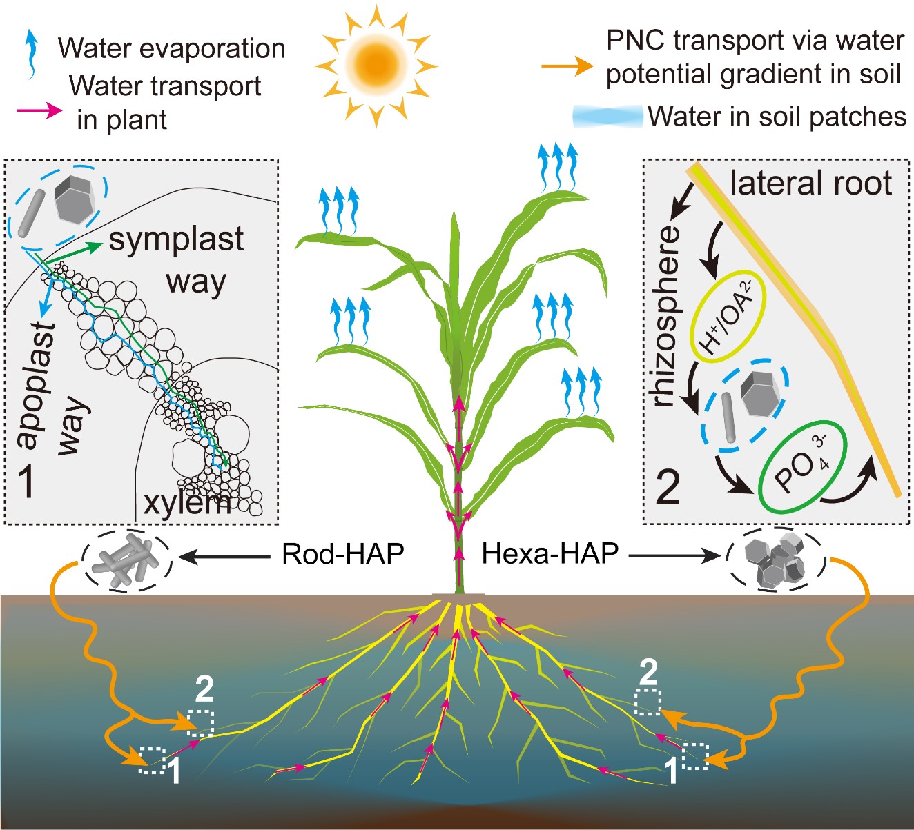 图2 “水—肥”协作模式下纳米羟基磷酸钙根际靶向磷养分递送新机制