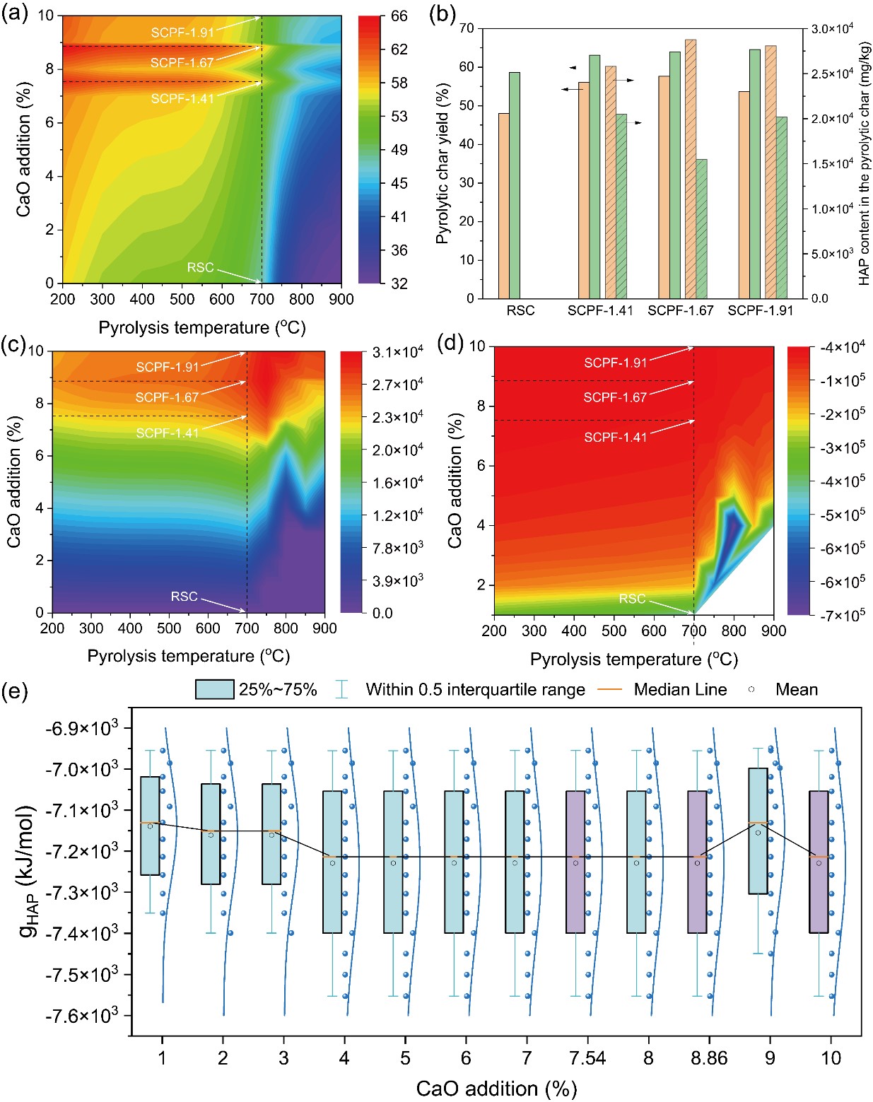 针对P2tHAP这一技术过程,采用热动力学计算,进一步考察磷定向转为羟基磷酸钙目标物相热化学机理。动力学计算结果表明,污泥原料Ca/P摩尔比可调控热解热化学过程中气—固相反应路径,进而影响磷定向转化过程的传热传质。热力学计算证实,随着污泥原料Ca/P摩尔比改变,羟基磷酸钙稳定的摩尔Gibbs自由能(~