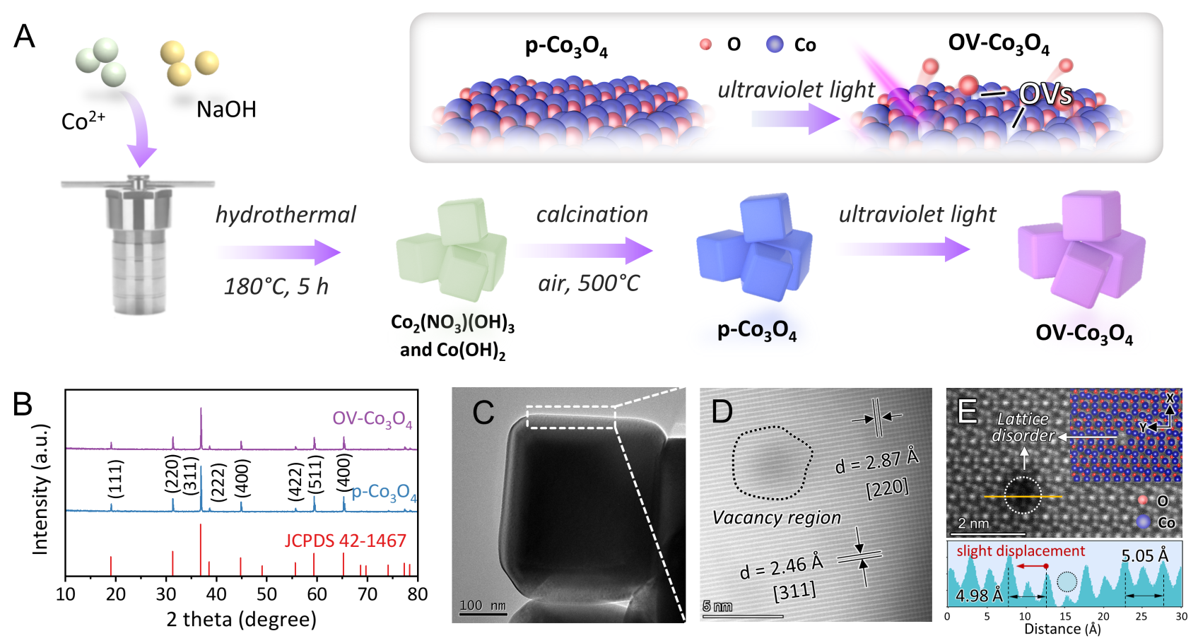 图1 含氧空位Co3O4材料的架构理念与催化活性增强原理