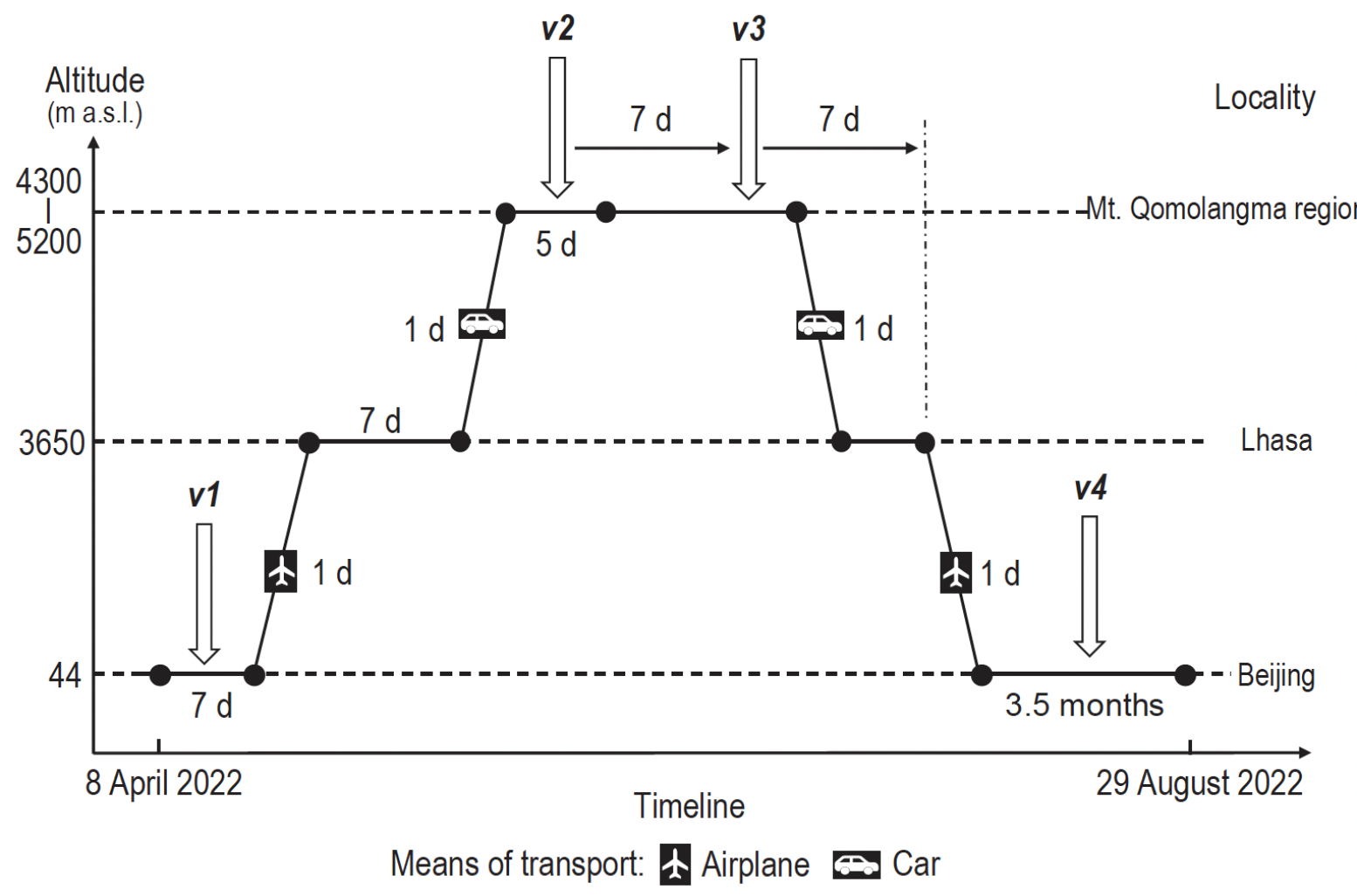 全球每年有超过一亿人前往高海拔地区(海拔≥2500米),2023年西藏接待旅游人数约5500万。赴高海拔人群均面临低压缺氧带来的健康风险与低温、强紫外线等暴露。目前,大量研究聚焦于缺氧暴露数天内急性高原病及其相关生理病理机制,但对于更长时间缺氧暴露下人体产生的适应性变化,以及回到低海拔后如何恢复的生物学机制尚不清楚。人体血流动力学调控着血流分布和氧输送效率,是高海拔生理适应过程的核心环节。因此,研究其动态变化有助于揭示人体经历高海拔缺氧持续暴露后的习服机制,以及返回低海拔后的恢复机制。
