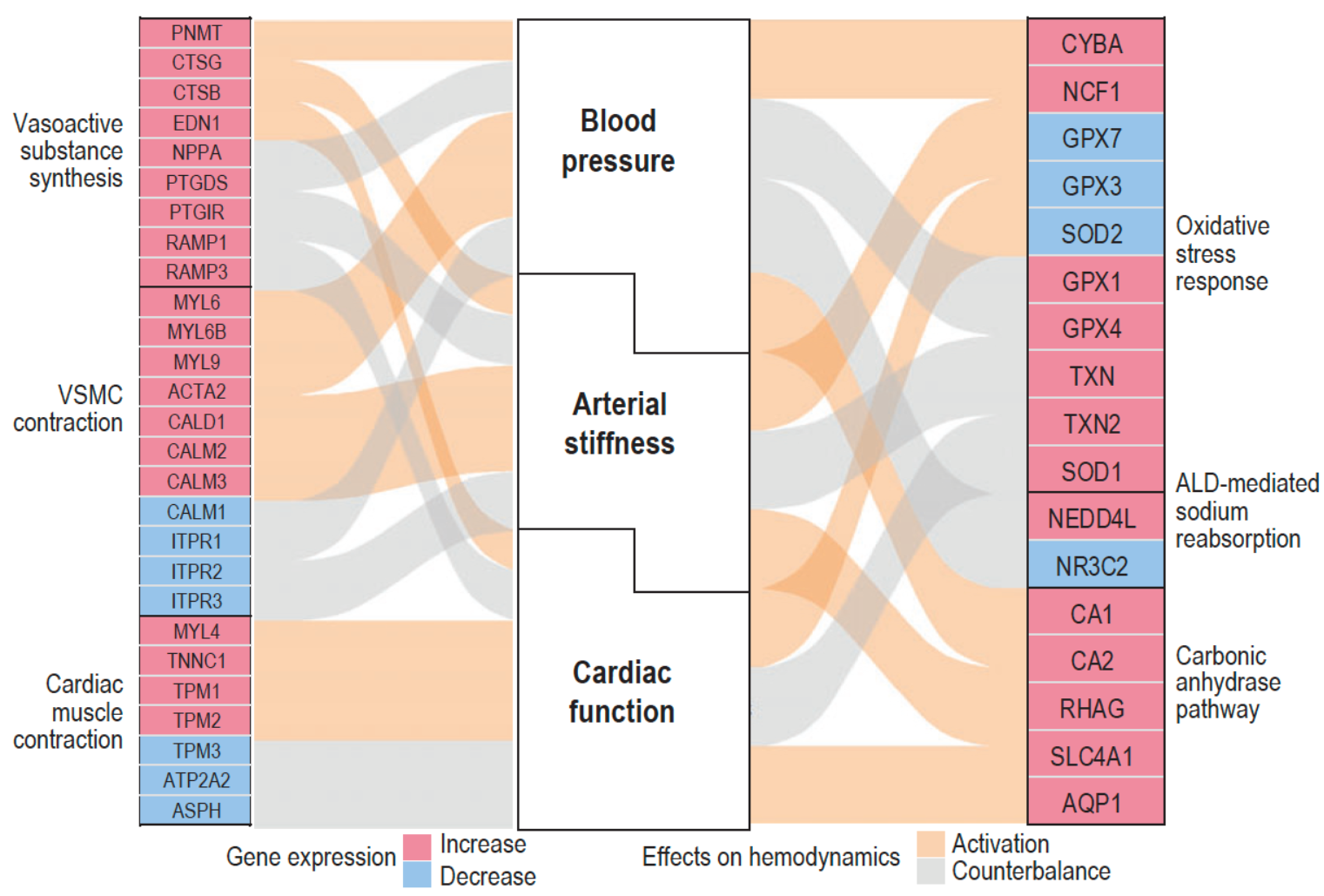 图4 血流动力学调控通路在高海拔的代偿性变化