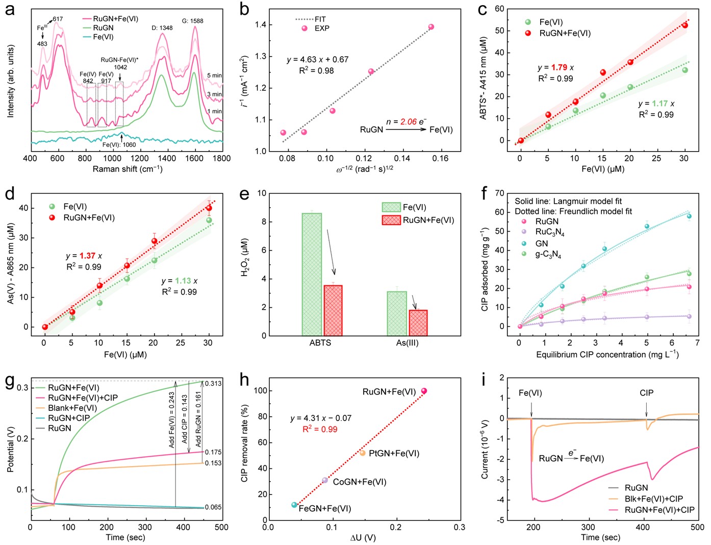 综上,本研究通过对Ru单原子的结构调控,优化了Fe(VI)的活化路径,抑制了Fe(VI)的自分解副反应,并实现了活性金属物种的选择性生成与电子的高效转移。该策略对水污染处理领域提供了科学参考。