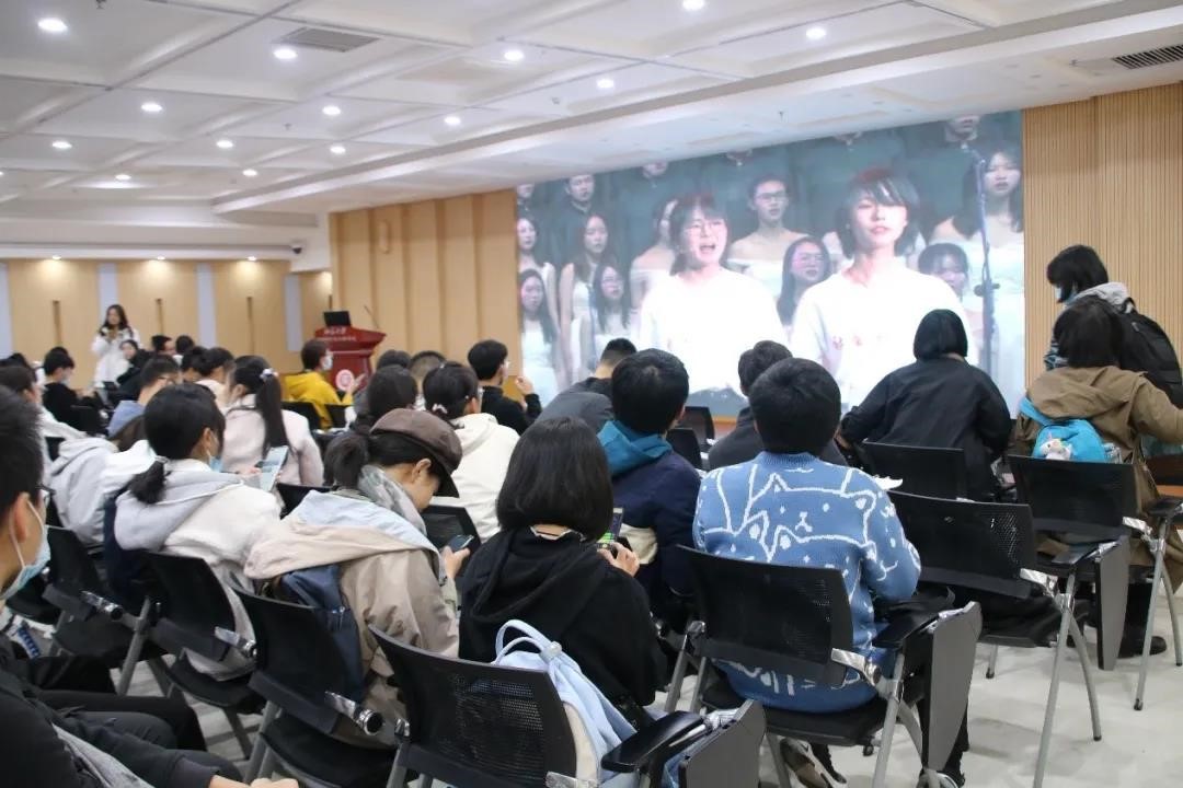 大会正式开始前,全体到场同学一起观看“HAPE”往年的比赛视频。视频中大家歌声嘹亮、情感真挚,台下的同学们也认真倾听、心有所感。去年“HAPE”人的精彩表现和骄人战绩极大地鼓舞了到场同学,激发了大家的排练热情。