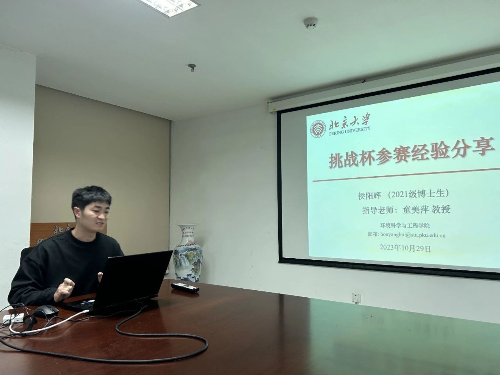 10月29日晚7点,环境科学与工程学院第32届“挑战杯”系列赛事宣讲会在环境大楼B112会议室举行。学院专职辅导员王昱博出席会议,校团委学术科创部骨干陆思羽,学院往届挑战杯获奖者2021级博士生侯阳辉、2023级博士生马啸天受邀介绍赛事安排和分享参赛经验。会议由院团委实践调研部部长李清铭主持。