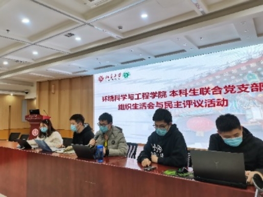 为深入学习贯彻党的十九届六中全会精神,不断推进党的建设新的伟大工程,根据《中国共产党组织工作条例》等规定和学院党委相关要求,2022年3月19日下午,环境科学与工程学院本科生联合党支部于环境大楼报告厅召开组织生活会并开展民主评议活动,总结上一年度党支部工作成果,讨论新学期工作规划,深入查摆问题,严肃开展批评与自我批评。支部全体党员参加会议,部分入党积极分子列席旁听,环境科学与工程学院党委书记李振山、党委副书记陆克定、团委书记吕丽出席会议。会议由本科生联合党支部书记林鹏昇主持。