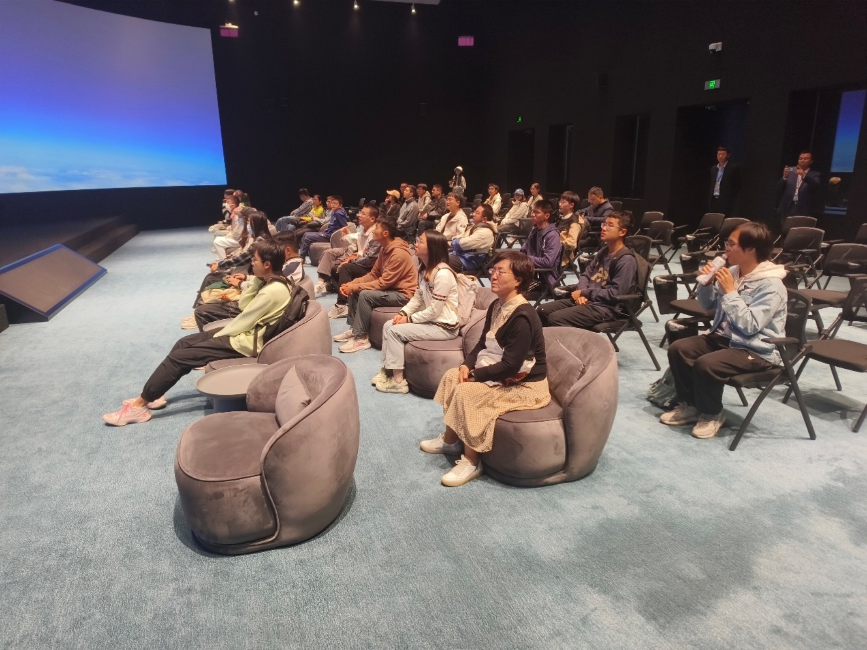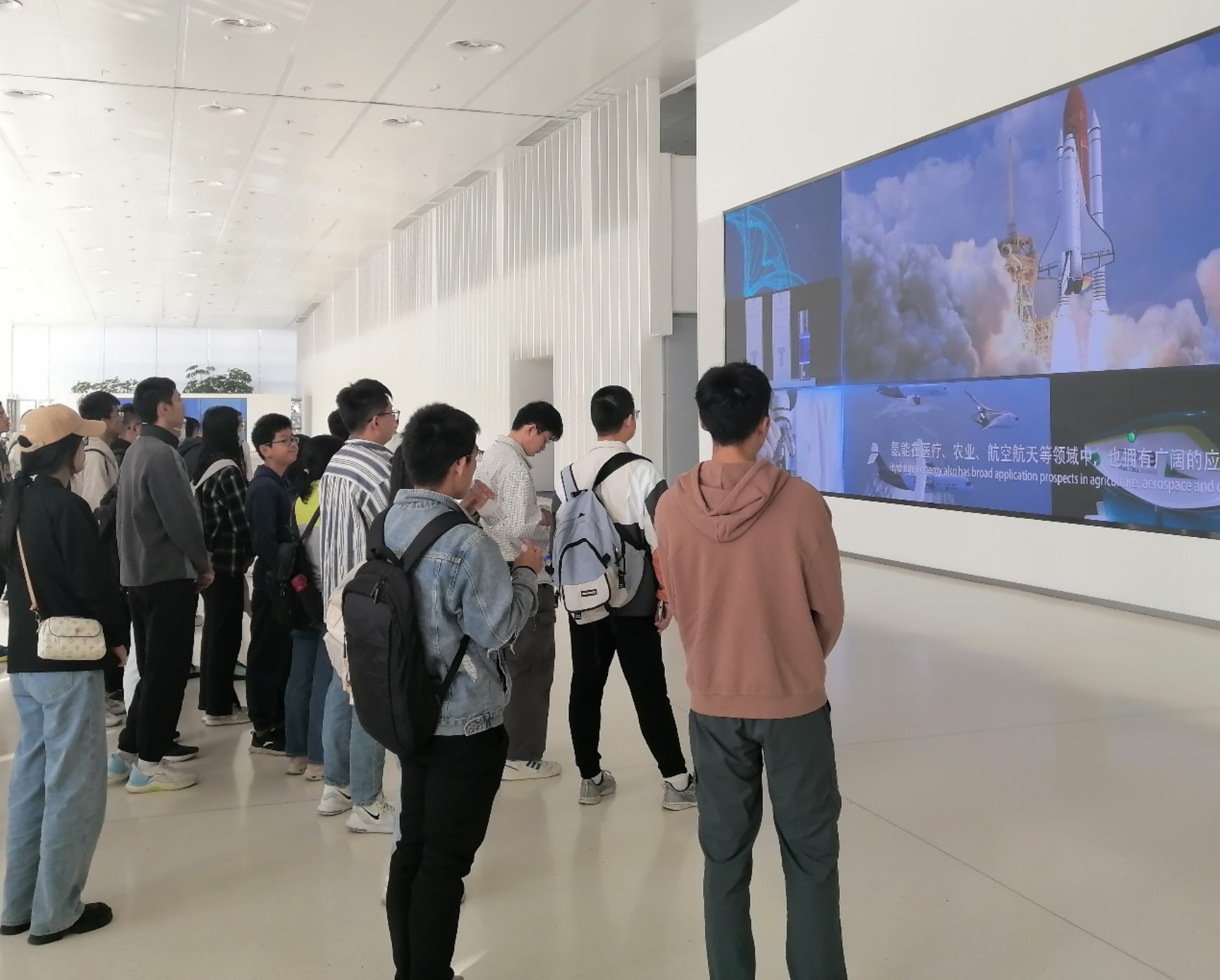 大兴国际氢能示范区产学研合作经理刘华东对环院师生的到来表示热烈欢迎。环院师生认真听取讲解员介绍,观看氢能主题宣传片,深入学习燃料电池、氢能储存、氢动力运输装备等全产业链先进技术和应用成果,详细了解大兴国际氢能示范区的建设发展情况以及氢能制造、储存、运输和应用等方面的产业发展情况。环院师生与示范区代表就氢能制备、应用领域的技术创新及发展趋势进行了深入探讨和交流。