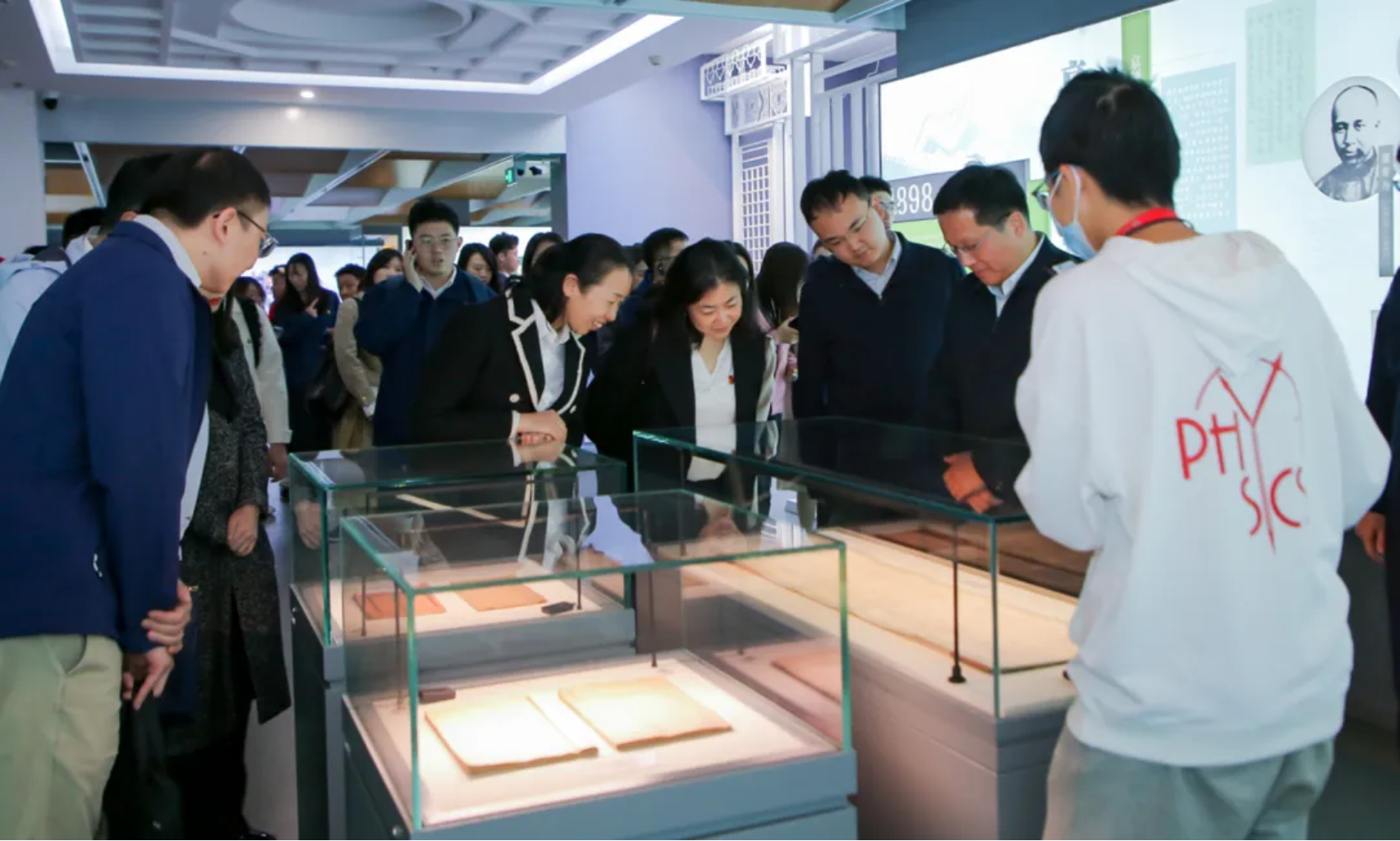随后,国家电网一行在学院师生的陪同下,前往北京大学校史馆参观学习。通过一件件珍贵手稿、原著典籍、图片资料,深入了解革命先辈们学习、传播马克思主义和创建中国共产党早期组织的史实,真切感悟北大“爱国、进步、民主、科学”的光荣传统及“勤奋、严谨、求实、创新”的优良学风和“思想自由、兼容并包”的治学风气。