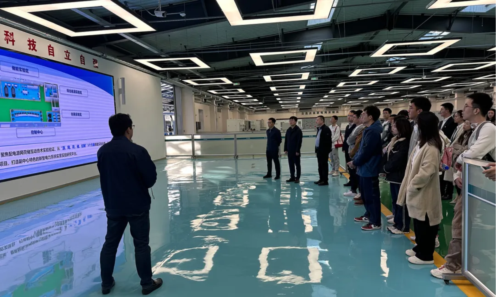 下午,学院师生受邀前往国网北京通州供电公司新型电力系统实验园区、新型电力系统创新中心参观调研,国网北京通州供电公司党委书记董毅参加活动。同学们认真听取讲解员介绍,详细了解新型电力系统及智慧零碳园区整体建设情况,深入学习光伏发电、储能、充电桩智能检测等先进技术及首都能源清洁低碳转型、电网数字化转型整体规划和实施进展。