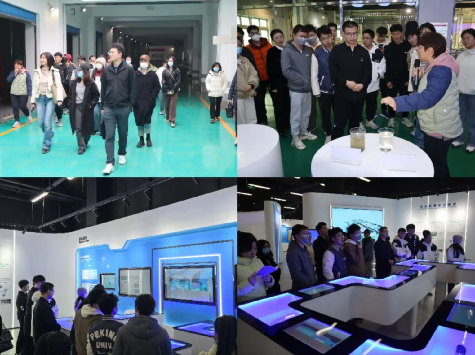 进入地下箱体,师生按照工艺流程分别对粗细格栅、沉砂池、除臭系统、生物池、膜池、污泥处理间、鼓风机房及配水泵房等工艺单元进行实地参观。水厂负责人向来访师生详细讲解介绍了污水处理设施全流程,并在“副中心再生水环保主题科普馆”生动展示了碧水地下水厂和地上公园的建造过程及生态功能,展示国家在水环境治理方面的成果。