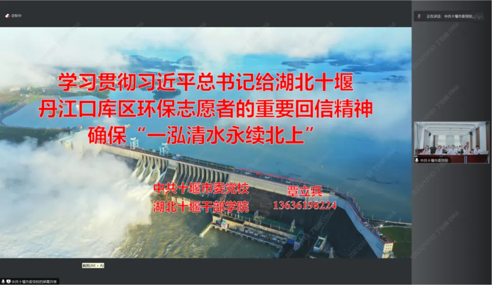 随后,十堰市委党校经济学教研室讲师覃立兵围绕“习近平总书记对湖北十堰丹江口库区环保志愿者重要回信精神”展开题为“确保‘一泓清水永续北上’”的党课宣讲。他重点介绍了十堰库区在环保志愿服务中的实践经验,积极呼吁全社会共同参与保护生态环境,保障南水北调的水源清洁。