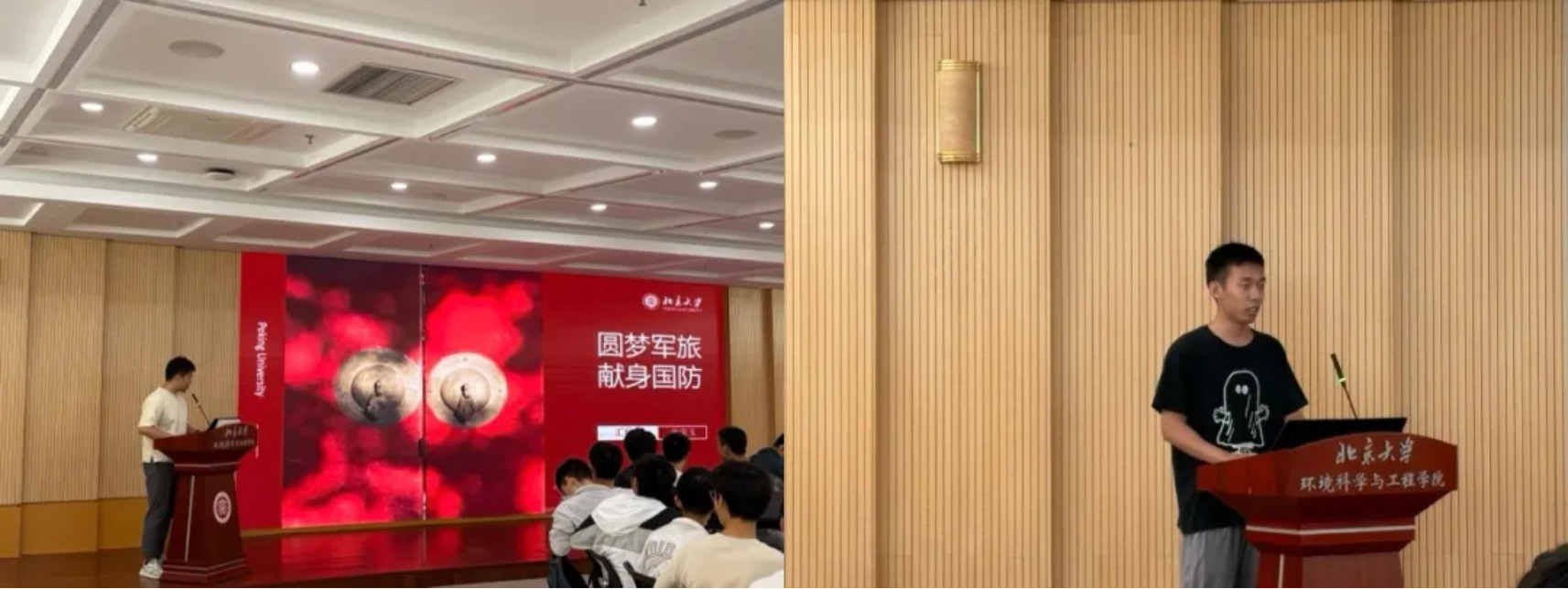 退役大学生士兵、2023级硕士生张宝玉向同学们做军旅生涯分享。张宝玉的爷爷参与过抗美援朝战争,在爷爷的影响下,张宝玉在大学本科三年级选择参军入伍。张宝玉回顾了在军队中的生活和感受,在经历了短暂的心理不适应后积极调整心态,以顽强的意志力迎接训练任务,最终成长为一名优秀的士兵。他以亲身经历鼓舞着在场的同学,希望同学们领悟努力拼搏的意义。退役大学生士兵、2023级博士生范瀚允向同学们分享军旅生活的体会。他表示,当兵首先是责任,然后才是梦想。在平凡的日夜中一定要坚持恪守岗位职责,锻炼自身的能力和培养积极的心态,在平凡的岗位上做不平凡的事情,优秀地完成任务。
