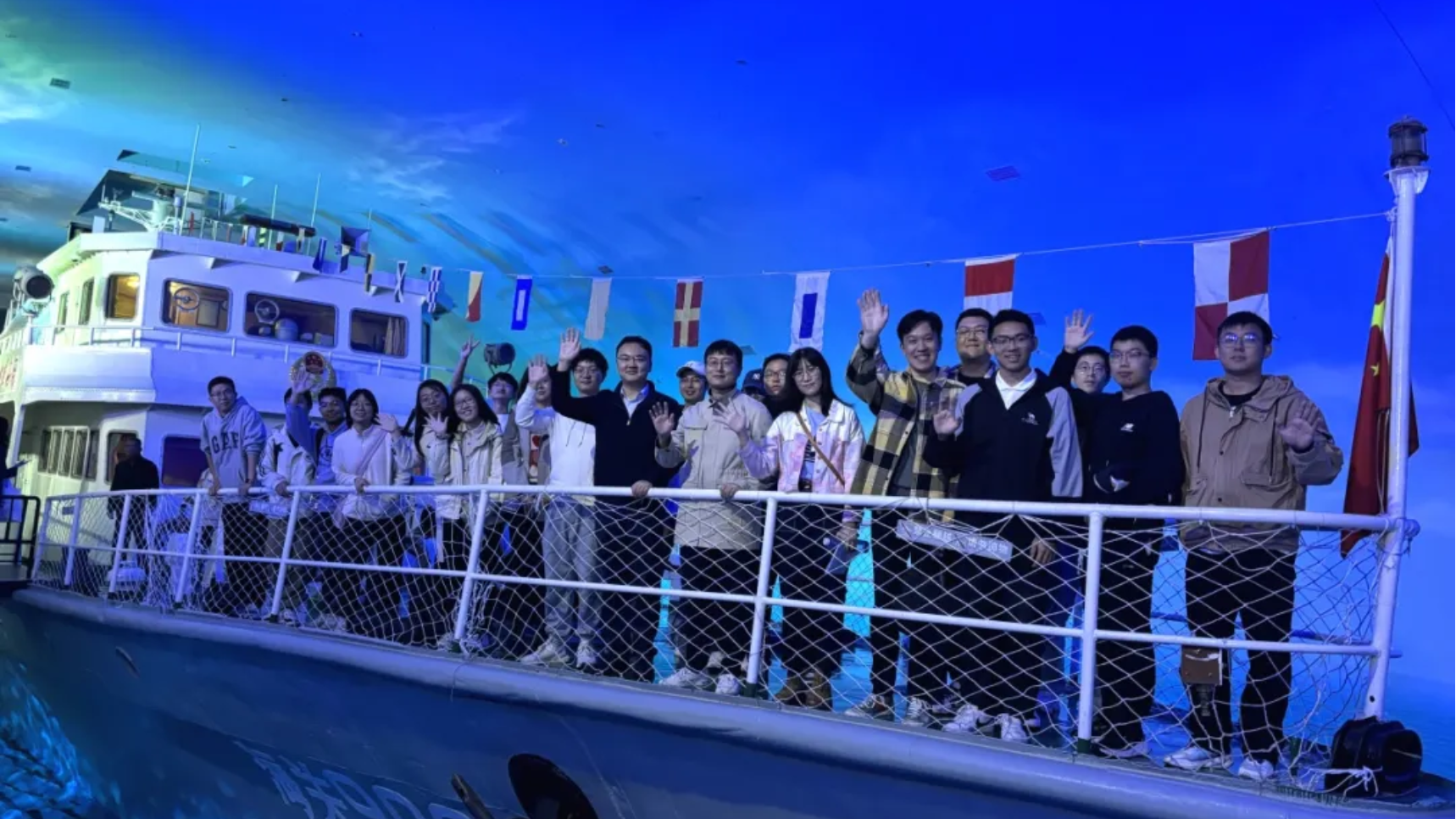 支部党员在“海关902”缉私艇甲板上合影