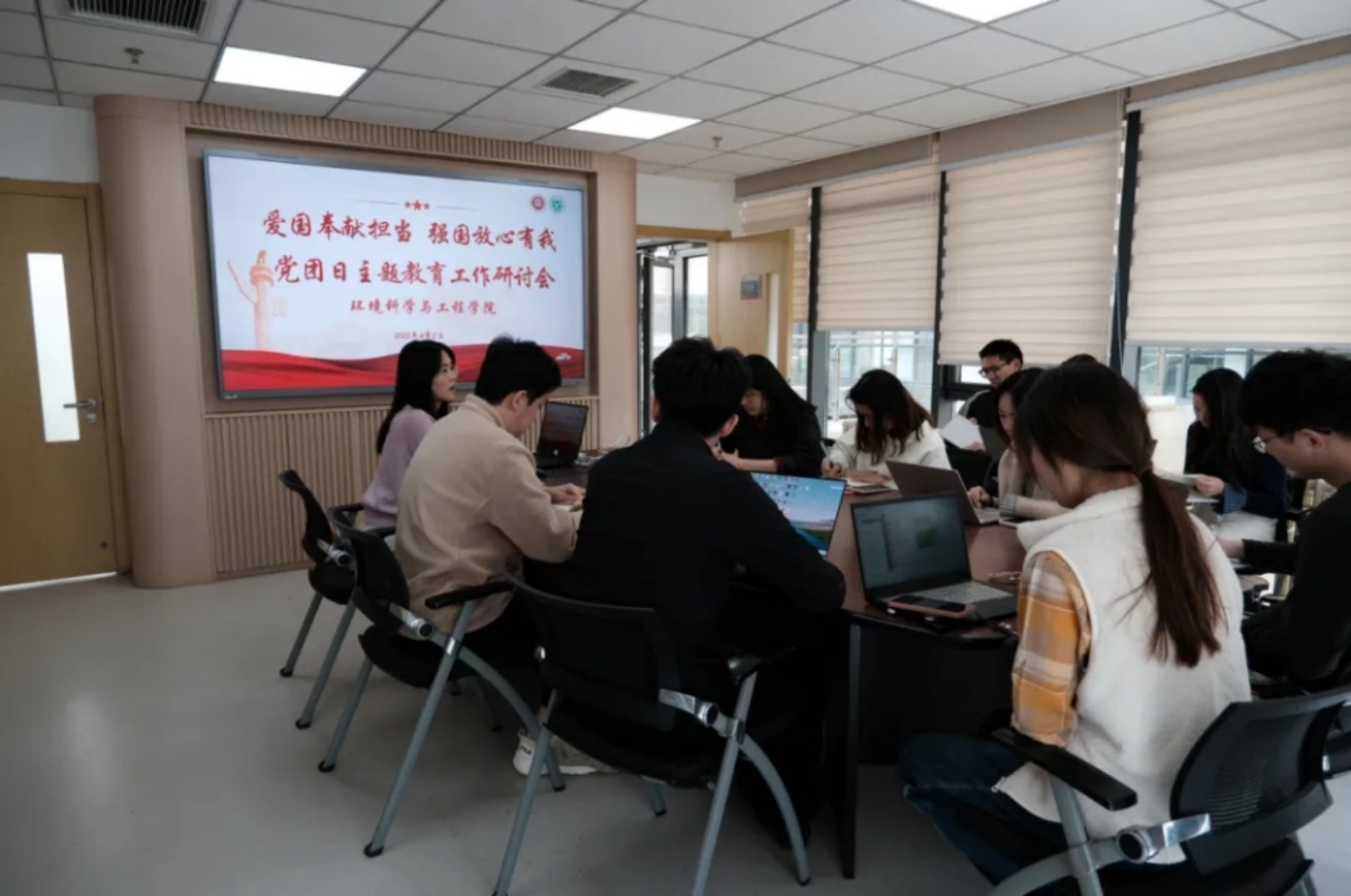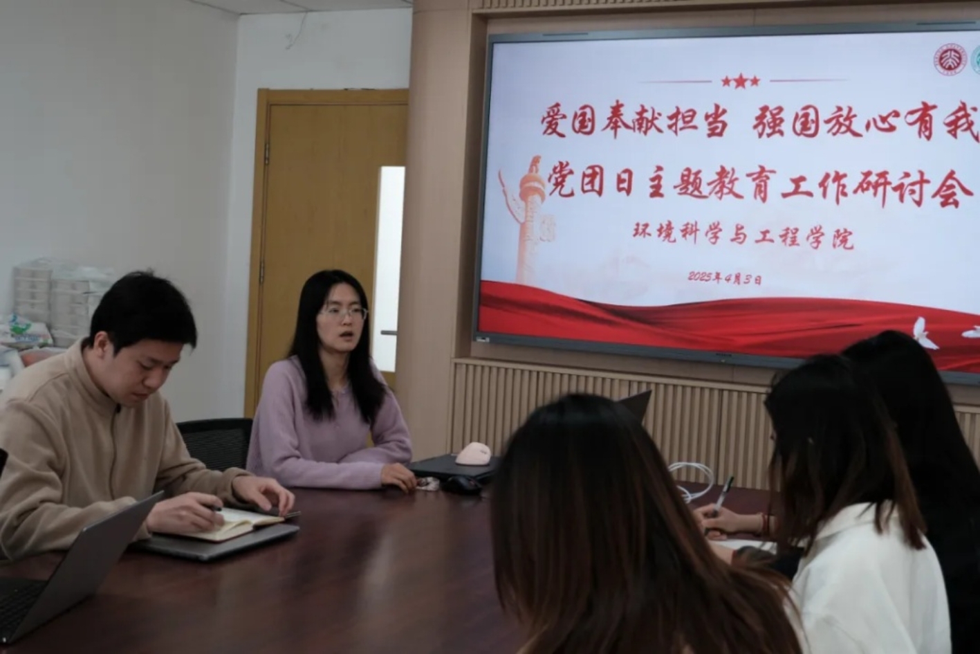 为进一步明确工作方向、凝聚共识,更好地开展后半学期各项工作,4月3日下午,环境科学与工程学院在环境大楼101会议室成功召开“爱国奉献担当 强国放心有我”学生党团日联合主题教育活动(以下简称“党团日主题教育活动”)工作研讨会。环境科学与工程学院团委书记吕丽出席会议,学院各学生党支部代表参加会议。