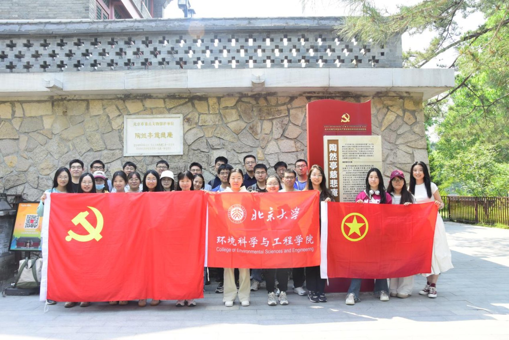 习近平总书记在党史学习教育动员大会上指出:“党的历史是最生动、最有说服力的教科书。”为深入学习贯彻党的二十大精神,强化青年党员、团员的思想引领,5月10日,环境科学与工程学院环境管理系研究生党支部、环境科学系研究生党支部、2023级博士生一班团支部、2024级硕士生班团支部前往北京市陶然亭公园慈悲庵红色教育基地开展“寻访红色印记,赓续青春薪火”主题共建活动,通过实地研学、专题党课、实践宣誓等形式,感悟中国共产党早期革命精神,探寻红色基因。