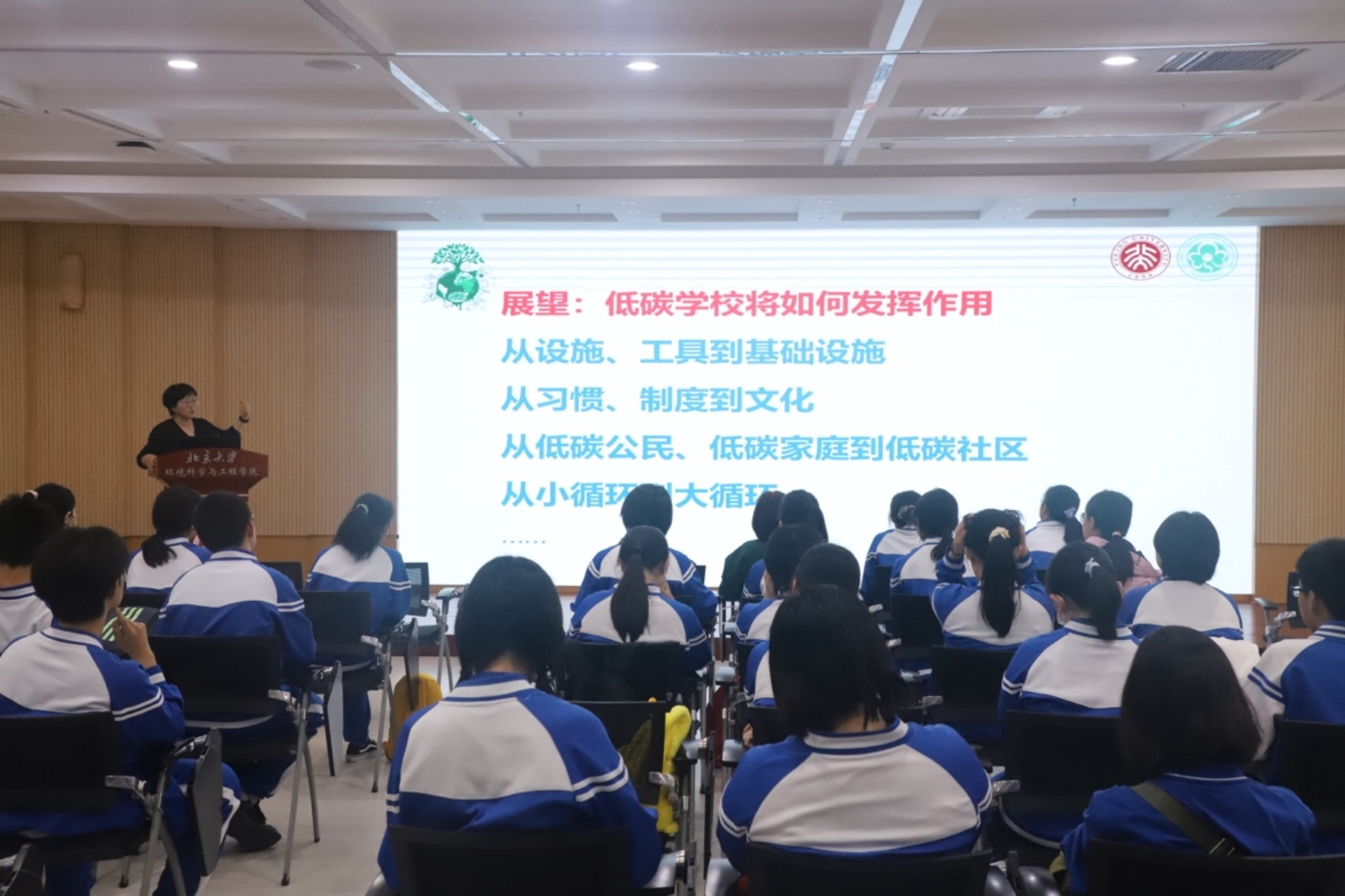 本次活动搭建了高等教育与基础教育协同育人的创新平台,通过绿色宣讲与校园导览相结合的形式,将生态文明理念深植青少年心田。北大环院学子以专业视角诠释环保使命,北京交通大学附属中学师生则以生活视角传递行动力量,形成了“知行互鉴”的良性互动。