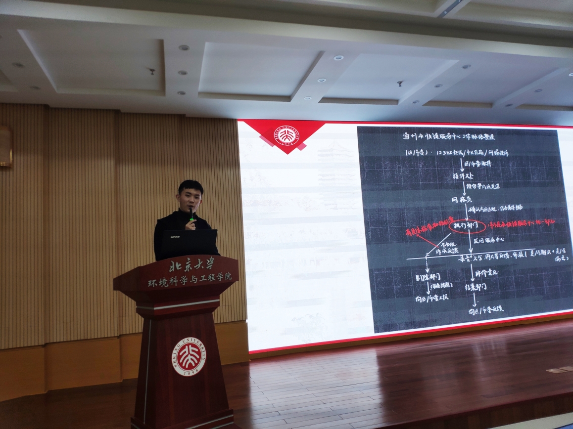 为总结学院此次思政实践的成果并给同学们提供彼此交流分享的机会,10月18日,北京大学环境科学与工程学院2020年思政实践总结会在环境大楼B121成功举办。此次总结会由学院思政实践负责人陈龙主持,工学院老教授于成才,团委书记吕丽,专职辅导员许人杰,实践团助教姜明栋、张冬梵以及参与此次实践的全体同学共同出席本次会议。