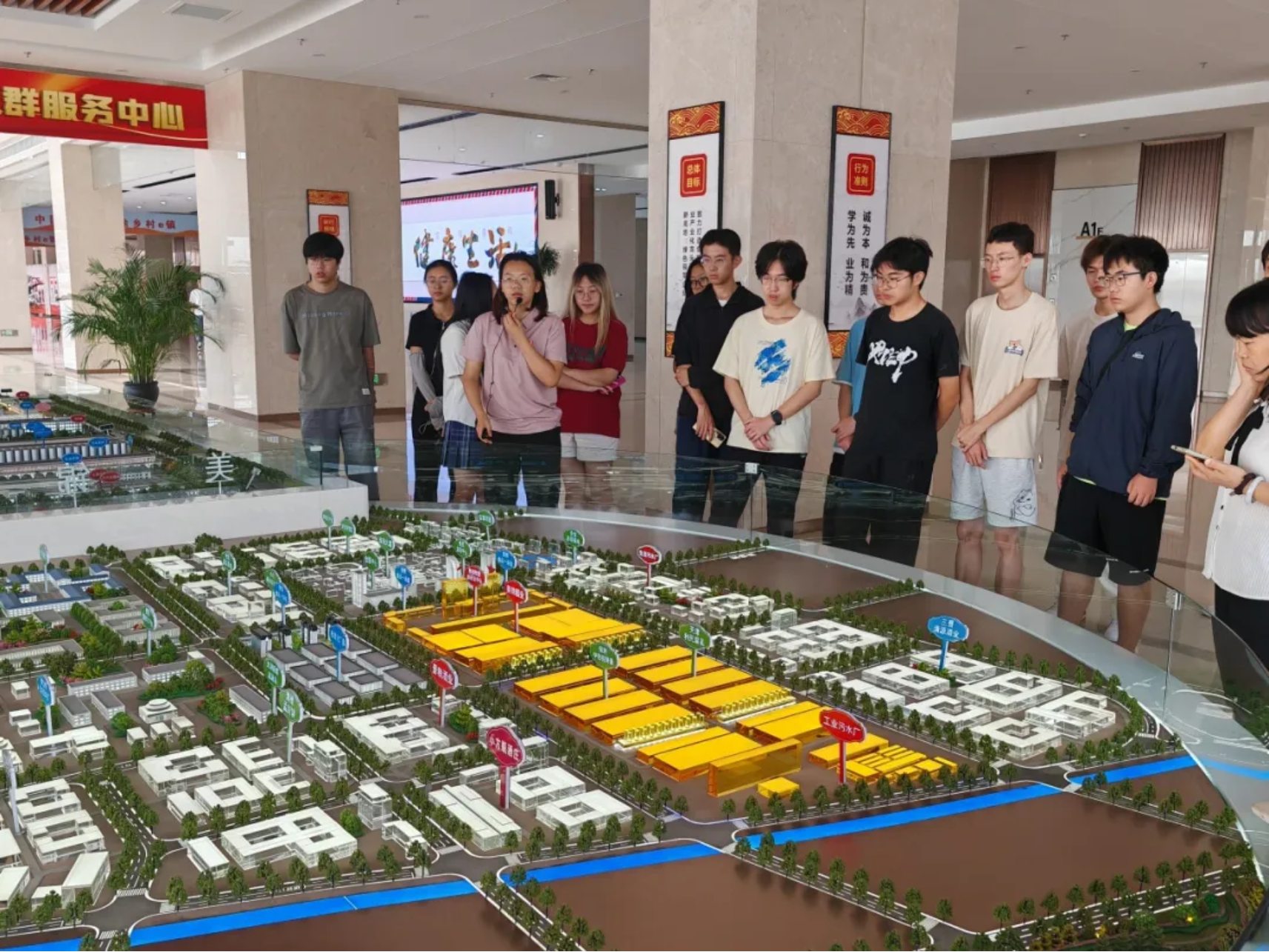 在呼延水厂,同学们学习了饮用水水厂的布局结构、饮用水处理工艺流程、相关基础设施等。在保障居民用水安全的基础上,呼延水厂通过合理安排工艺流程、厂区位置,持续践行“降本增效”的环保理念。