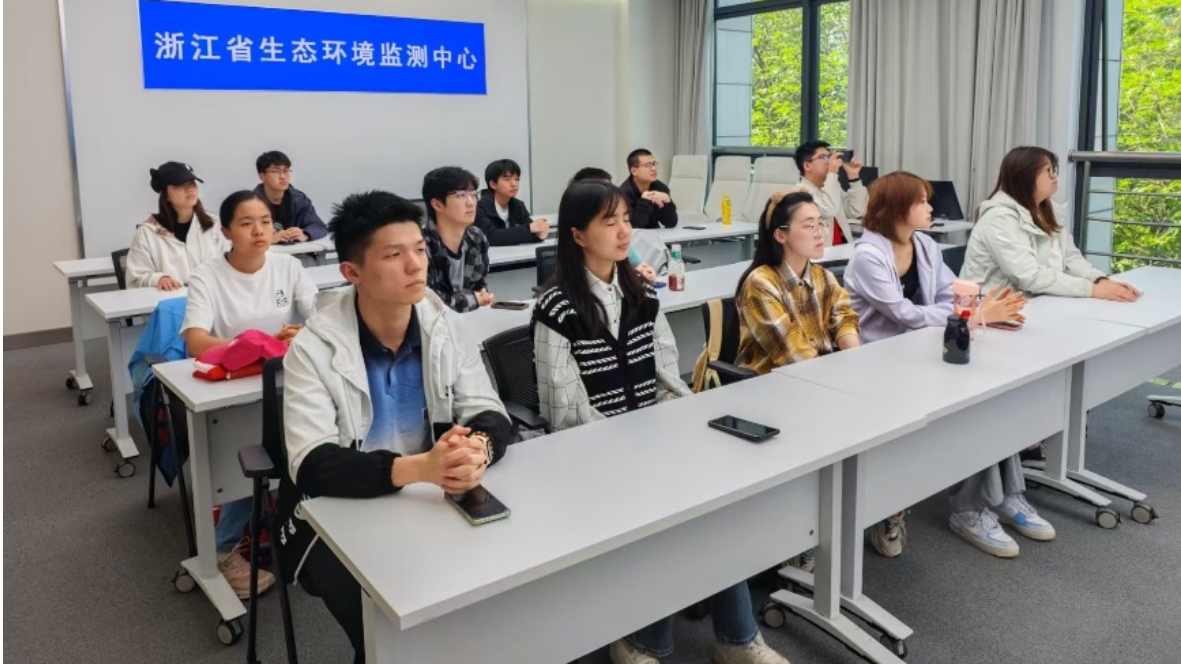 4月26日中午,师生一行抵达位于杭州市的浙江省生态环境监测中心。作为浙江省生态环境监测体系的核心技术支撑单位,浙江省生态环境监测中心承担着全省环境质量监测、污染源监管、生态评估和突发环境事件应急响应等重要职能。依托现代化监测网络和大数据分析,该监测中心为政府决策、环境管理和公众知情提供科学依据,是守护浙江绿水青山、推动生态文明建设的关键力量。