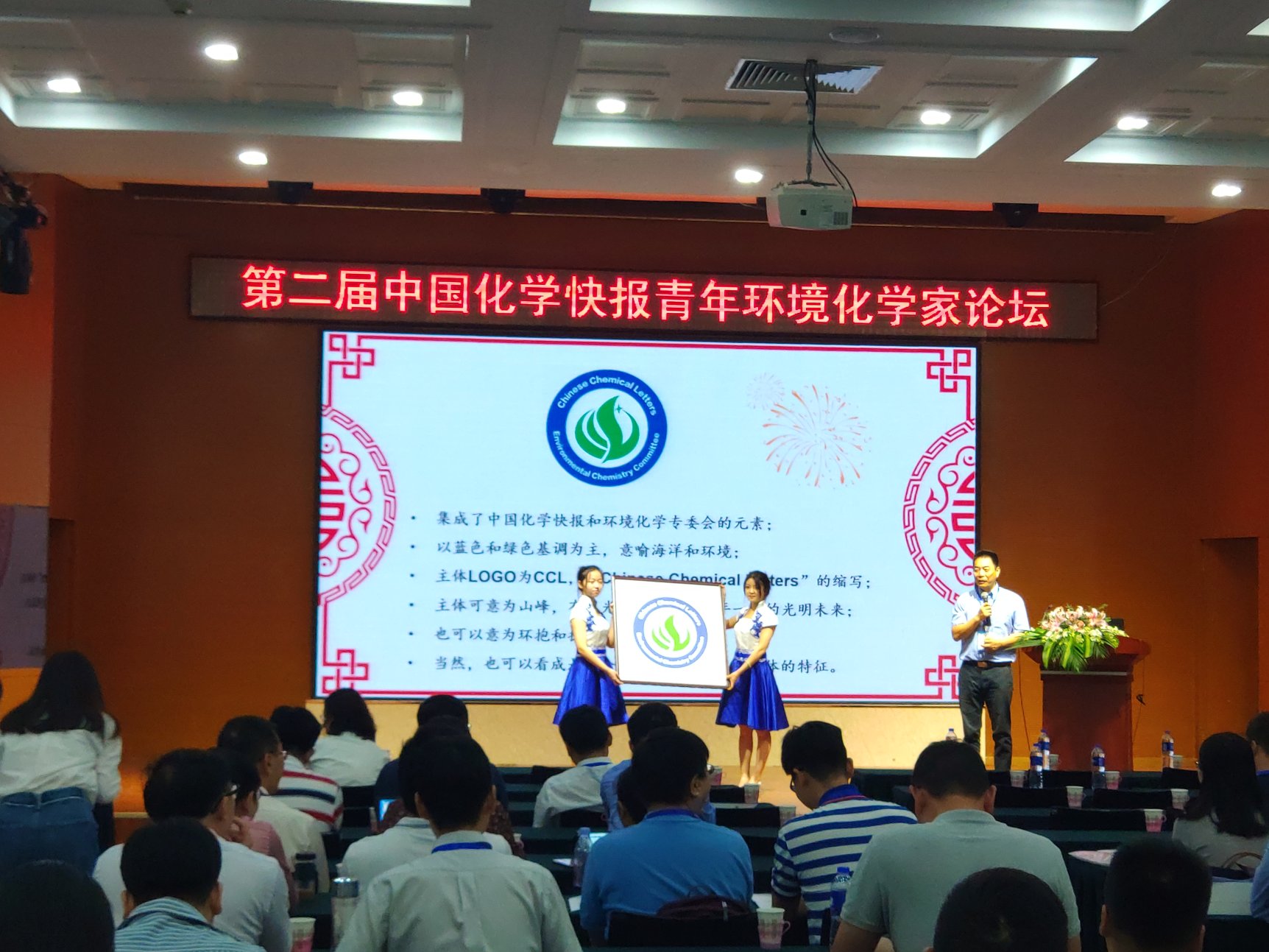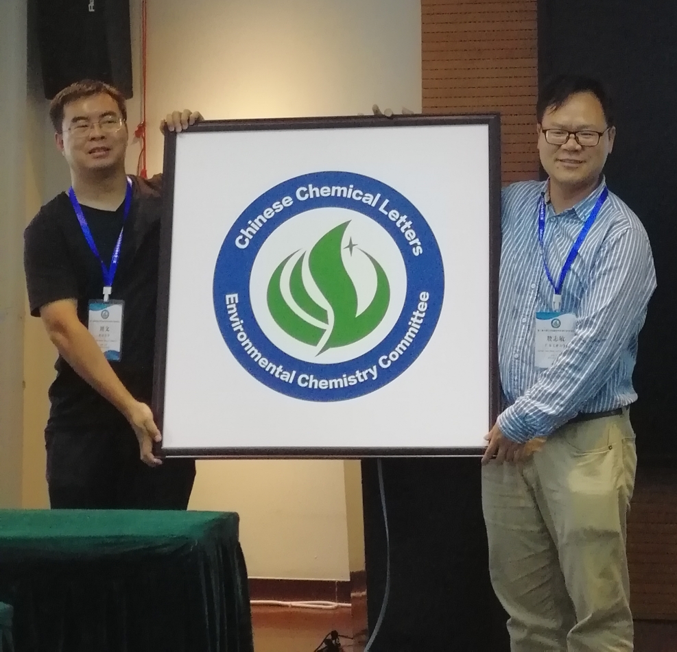 之后, CCL编委、国家杰出青年科学基金获得者、东莞理工学院牛军峰教授和中国科学技术大学盛国平教授共同揭晓了《中国化学快报》环境化学分委会LOGO。LOGO以蓝色和绿色基调为主,意喻海洋和环境;主体图案为CCL字形,“Chinese Chemical Letters”的缩写;主体湍可意为山峰,有星光闪耀,指代青年一代的光明未来;也可以意为环抱和拥抱未来。该标志将作为《中国化学快报》环境化学分委会官方LOGO持续延用。