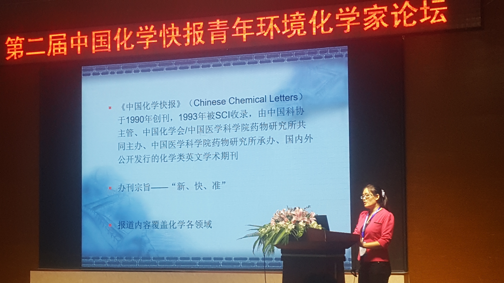 接着,《中国化学快报》期刊编辑部主任助理王俊丽老师就近年来期刊的发展情况、成果和未来目标做介绍。CCL以报道覆盖化学各领域的原创性研究成果为特色,期待更多的青年学者把优秀的科研成果发表在中国的期刊上。