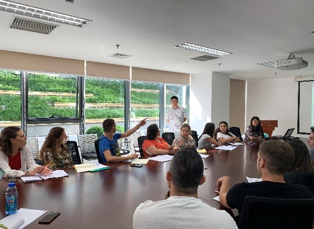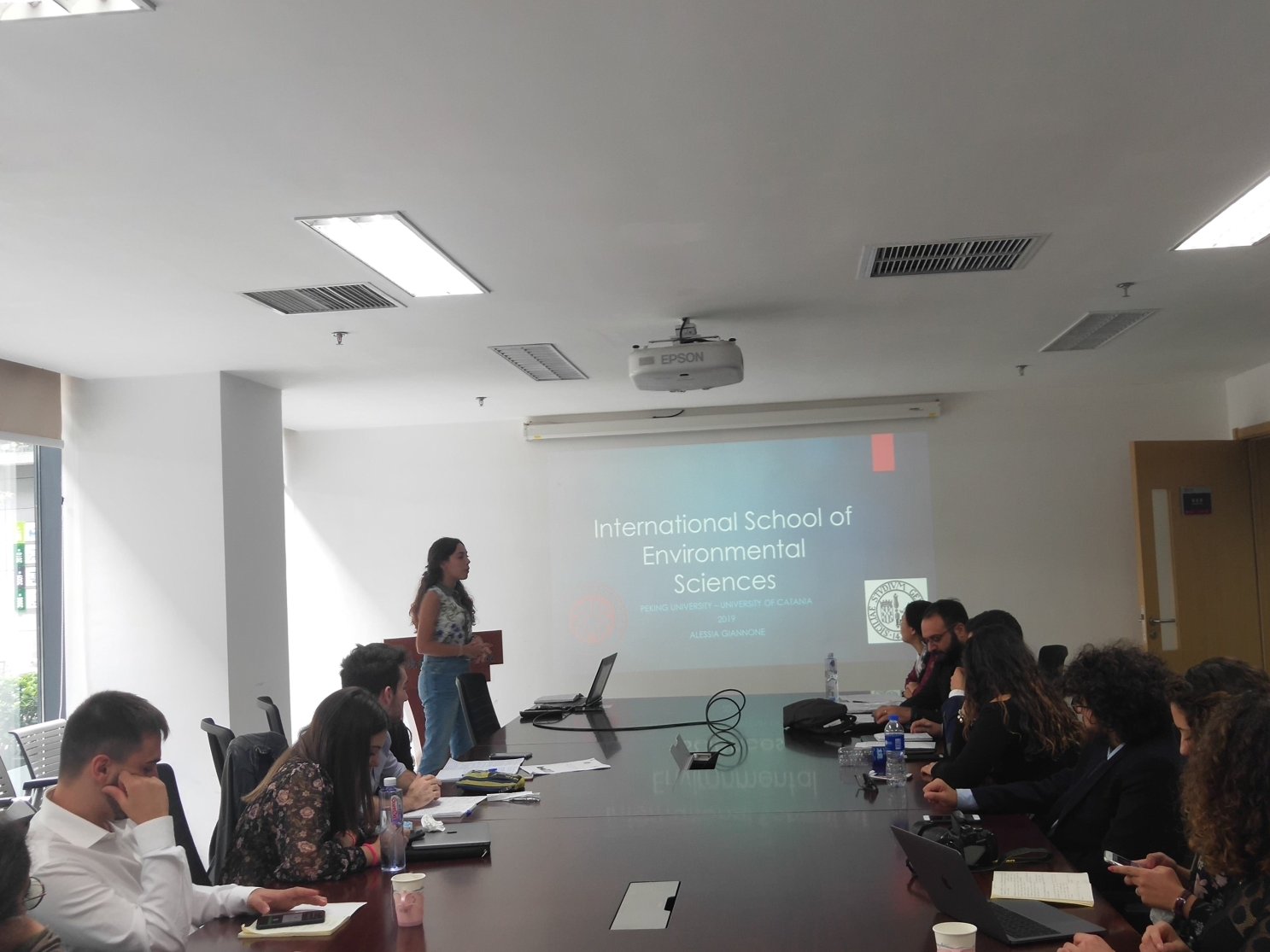 交流活动的最后一天,卡塔尼亚大学学生代表团一行17人进行了本次学习活动的结业汇报和讨论。同学们依次汇报了在本次交流活动中得到的收获和对未来科研活动的进一步构想。比如,ESTER 将学习到的大气污染相关知识与自己所研究的病理学内容进行结合。讨论了污染物进入人体后如何作用于器官,尤其是大脑 、肺部、心脏和血液,从而对健康产生危害,并表达了回到Cantata大学后想继续深造的想法; DEBORA谈到意大利有很多传统建筑被SO2等污染气体腐蚀,如何运用环境科学和大气化学相关知识来研究其过程和机制值得探索;BRUNO对各种先进仪器表达出浓厚的兴趣,他表示在北京大学学习到了PTR-TOF-MS技术,可以用于回国后研究意大利的火山来源的PAHs;ANDREA基于文献,从气候、组成、区域污染、年际变化等角度,初步分析总结了北京市的空气污染状况,他同时对观测站点大气采样和测量技术感兴趣,希望能够借鉴到所在城市Catania的空气采样系统中。同学们感谢北京大学环境科学与工程学院的邀请和组织,并表达了此次交流学习的重要性,能够促进双方学校在环境科学与化学学科的交叉融合发展,对他们是一个很好的学习机会。汇报结束后,尚静老师代表学院给大家颁发了本次国际学校的结业证书,此次卡塔尼亚大学-北京大学国际学习交流活动圆满结束。