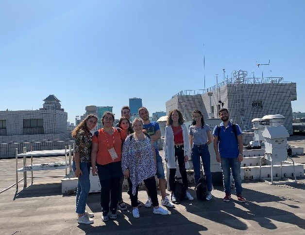 学生代表团还参观了位于北京大学理科楼楼顶的大气外场观测站点。该站点配备有包括气溶胶质谱仪(AMS)、在线气体及气溶胶成分检测仪(IGAC)和化学电离质谱(CIMS)等在内的先进大气气溶胶组分测定仪器,这些仪器能够测定大气气溶胶中硫酸盐、硝酸盐、铵盐及及挥发性有机物等多种组分,在大气组分分析中发挥重要作用。通过参观,同学们了解到了大气污染物外场观测过程,以及样品的采集与分析等方面知识。
