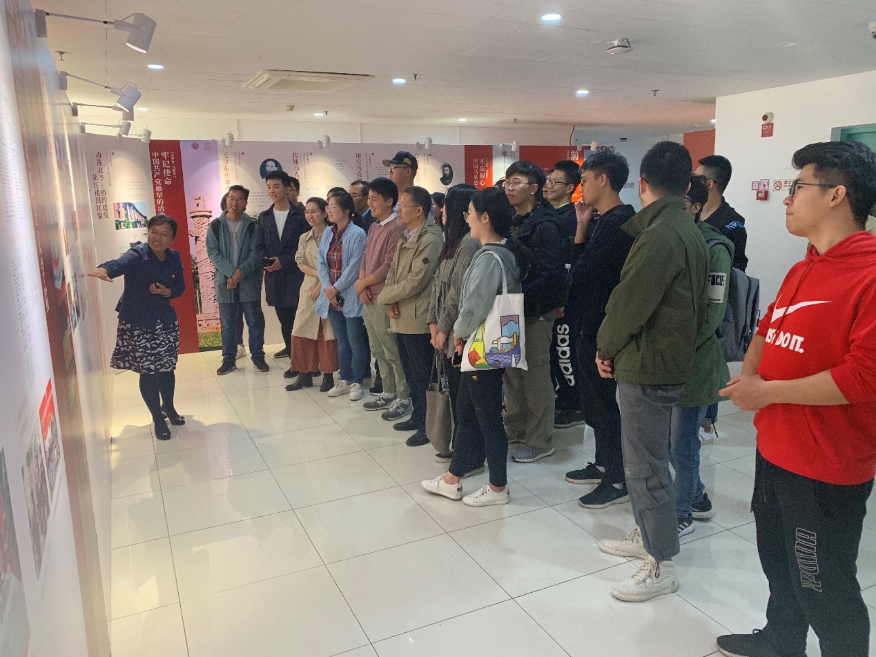本次参观大家热情高涨,马克思主义学院副研究员巩梅老师担任主讲人,带领大家共同回忆了习近平总书记2018年5月2日考察北大马克思主义学院时的情景,回顾了马克思主义在中国的早期传播,特别是北京大学在这一过程中作出的重要贡献。介绍了毛泽东、李大钊、陈独秀、邓中夏等革命先辈为中国共产党的创建和发展壮大在北京大学所做的重要工作。她讲到,习近平总书记在参观过程中强调,高校马克思主义学院就是要坚持“马院姓马,在马言马”的鲜明导向和办学原则。北京大学作为最早开始传播马克思主义的地方,在新时代应该继续肩负起传播马克思主义的重任,落实立德树人根本使命,为培养社会主义合格建设者和可靠接班人作出应有的贡献。