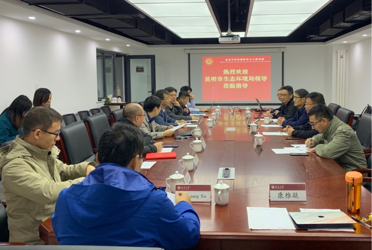 李振山代表学院对昆明生态环保局调研组的到来表示欢迎,他谈及北大和昆明曾经在苦难岁月中结下的特殊感情,感谢云南省政府、昆明市政府、环境局及监测中心等单位在过去对我院水环境团队多项科研工作的开展给予鼎力支持。最后他强调北大将充分发挥自身智力和经验优势,与昆明市生态环境局加强务实合作,全力支持、服务、助力昆明再现蓝天。