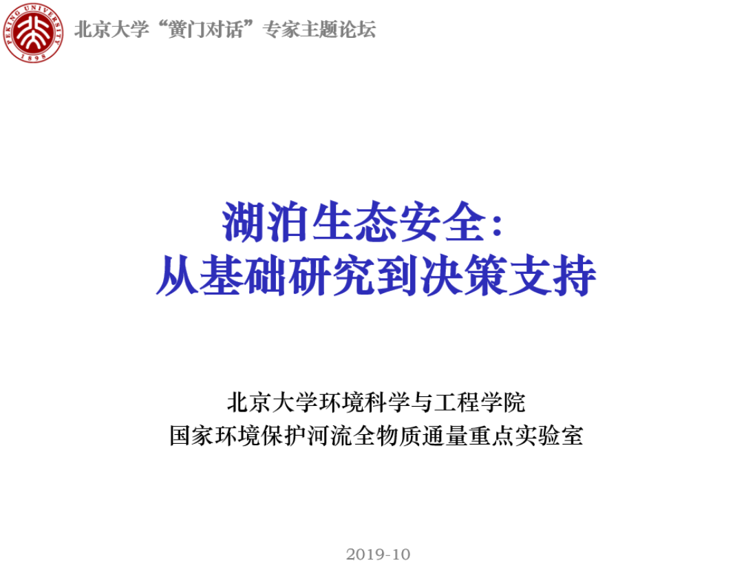为探索湖泊富营养化机理和防治对策,促进学科交叉融合和学术思想对话,引导研究生对学术和理想的思考、对科学和人文的探讨、对国家和社会热点问题的关注, 2019年10月28日,北京大学第54期“黉门对话”—“湖泊生态安全:从基础研究到科学决策”专家主题论坛在中关新园举行。论坛由北京大学研究生院主办,北京大学环境科学与工程学院和国家环境保护河流全物质通量重点实验室承办。