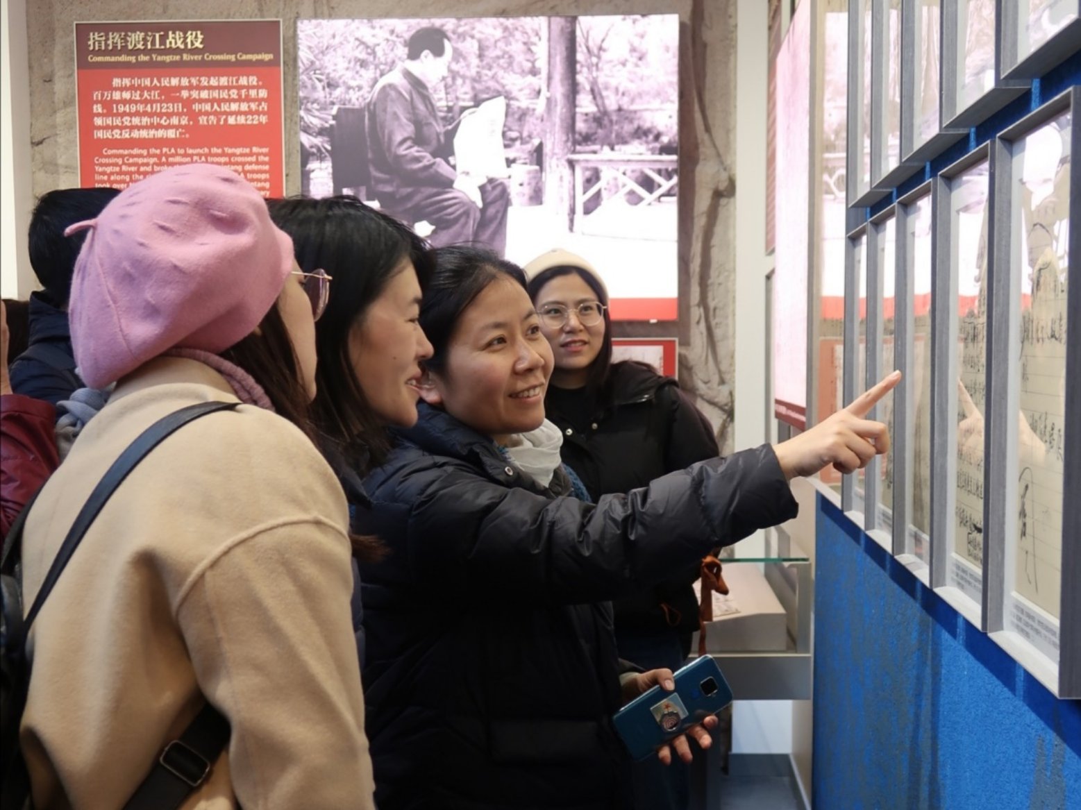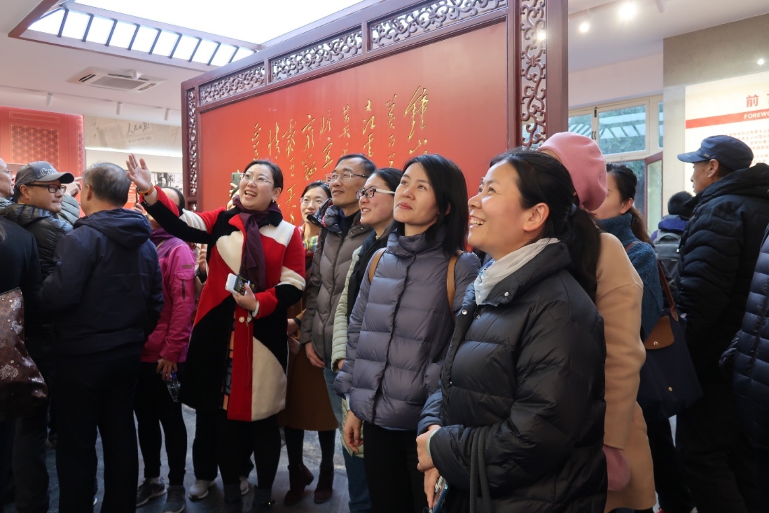 在香山革命纪念馆内,教师们参观了《为了新中国奠基——中共中央在香山》大型主题展览。该展览由“进京‘赶考’”“进驻香山”“继续指挥解放全中国”“新中国筹建”“不忘初心牢记使命永远奋斗”五个部分组成。大家置身于高度还原的历史场景中,通过800多幅图片、报照、地图、表格和1200多件实物、文献和档案,见证了中国共产党人团结各界人士凝心聚力描绘新中国宏伟蓝图的艰辛和荣耀,深切体会到了老一辈革命家艰苦奋斗的优良作风,受到了深刻的思想政治洗礼。党委副书记刘卉感叹老一辈革命家艰苦奋斗创下丰功伟绩的来之不易,鼓励师生在工作和学习中都要不忘初心,牢记使命,以最饱满的热情面对工作和学习。