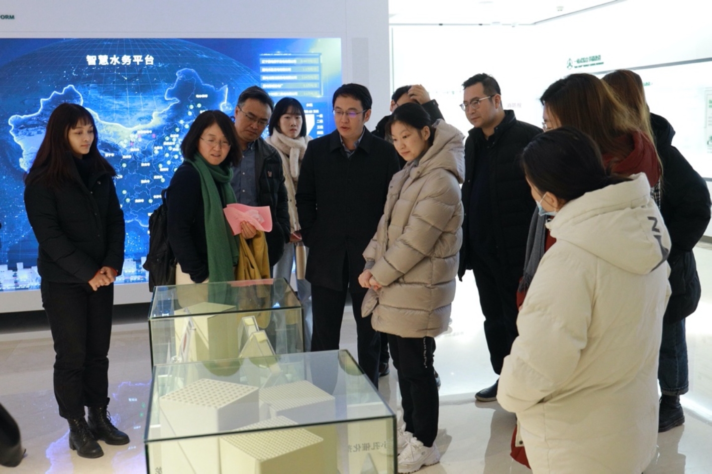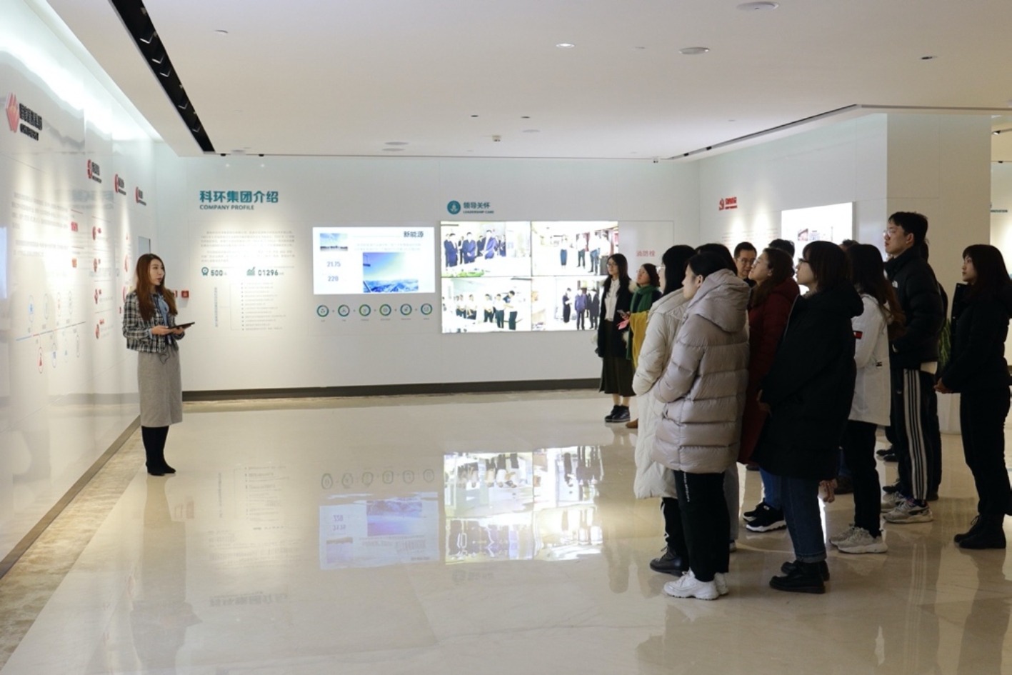 见面会后,赵喆带领师生参观科环集团展厅,详细介绍了科环集团在环保、节能、电站总承包一体化服务、新能源、电力电子信息化等领域的先进科技创新及产业转化成果。他就同学们关心的公司管理模式、人才培养、福利待遇、实习机会等问题,进行了细致解答,并再次对北大环院学子加入科环集团表达欢迎和期待。