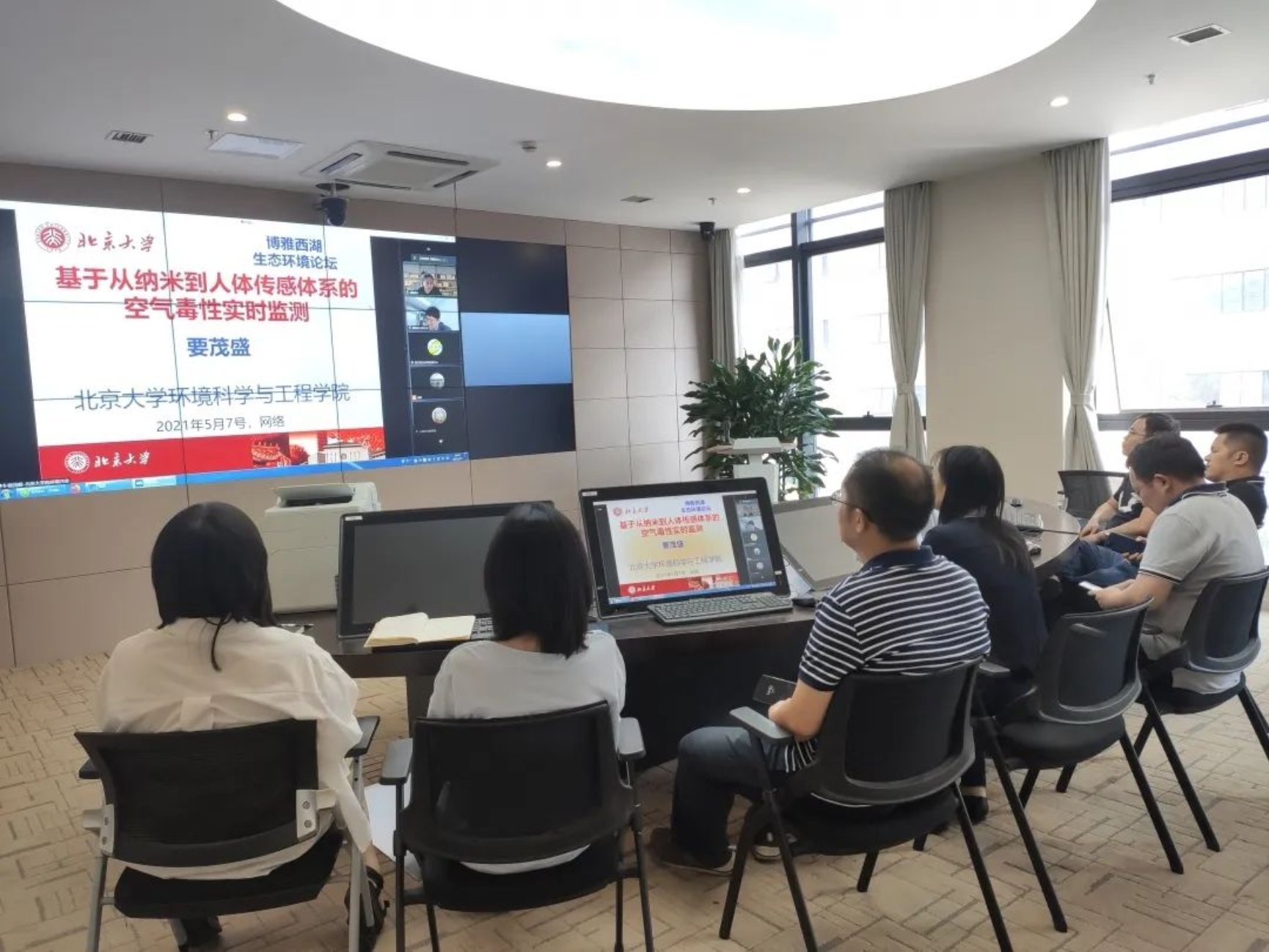 作为科技科普活动之一,5月7日下午,要茂盛教授参与“博雅西湖生态环境论坛”, 在线作了题为“基于从纳米到人体传感体系的空气毒性实时监测”的学术报告,这也是 “博雅西湖生态环境论坛”2021年第五次学术讲座在线上举办,讲座由北京大学胡敏教授主持,来自浙江、福建、北京、上海、湖北和广东等省市生态环境局、监测中心、环科院、高校和环保企业等生态环境保护相关科研和技术人员共计60余人通过视频系统与会。