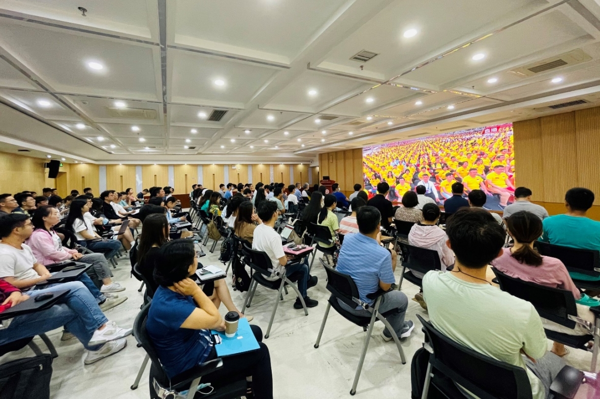 7月1日上午,庆祝中国共产党成立100周年大会隆重举行,中共中央总书记、国家主席、中央军委主席习近平出席大会并发表重要讲话。环境科学与工程学院组织百余名党员师生在刘水楼B121报告厅集体收看了庆祝大会实况直播,深入领会习近平总书记重要讲话精神。学院党委书记李振山,副院长刘永,党委副书记陆克定、李杨,党委委员张世秋、胡建信等出席活动。