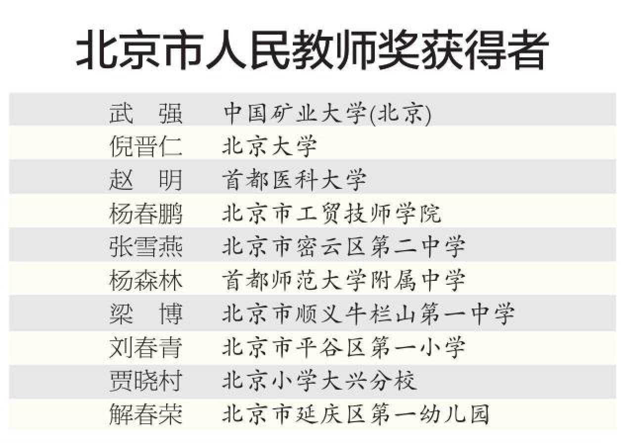 注:本文主要来源于《北京日报》2021年9月10日重磅发布!10名教师获“北京市人民教师”称号 ,内容有删减。