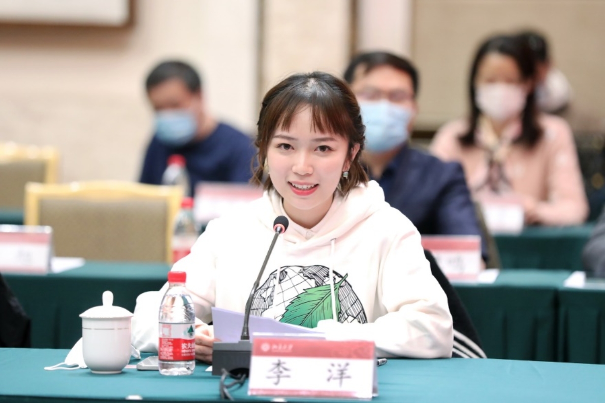 团队学生代表、环境科学与工程学院2020级博士生李洋讲述了自己的学习科研经历和感受,表示在老师们的言传身教下坚定了努力奋斗、奋力报国的信心和决心,将时刻牢记和传承黄大年等老一辈学者的科学家精神,不负总书记嘱托,努力成为一个合格的北大人。