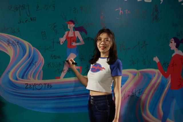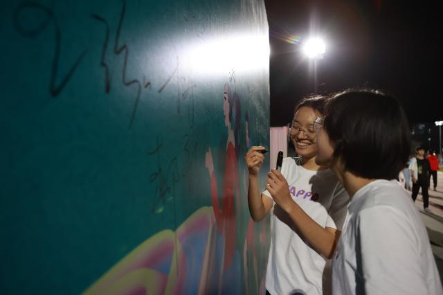 音乐渐近尾声,本次夜奔也迎来了圆满结束。完成奔跑的老师同学们在主题签名墙上写下自己的环保宣言,并积极合影留念。2021级本科生范思远激动地说道,能够在环境主题歌曲下奔跑感觉能量非常充沛,“比平时都多跑了2公里”。2020级博士生张思露表示,和大家一起夜奔后心情无比畅快,最近的科研压力都一扫而空了。2019级本科生班主任邱兴华感慨道,作为学生时期的跑步爱好者,此次和同学们一起奔跑,让跑步多了一份意义,也让自己更加青春。李振山表示,此次夜奔活动既是传播生态文明理念、增进师生交流的形式创新,体育育人与心理育人相结合的方式也是推进学生身心健康教育的积极尝试。