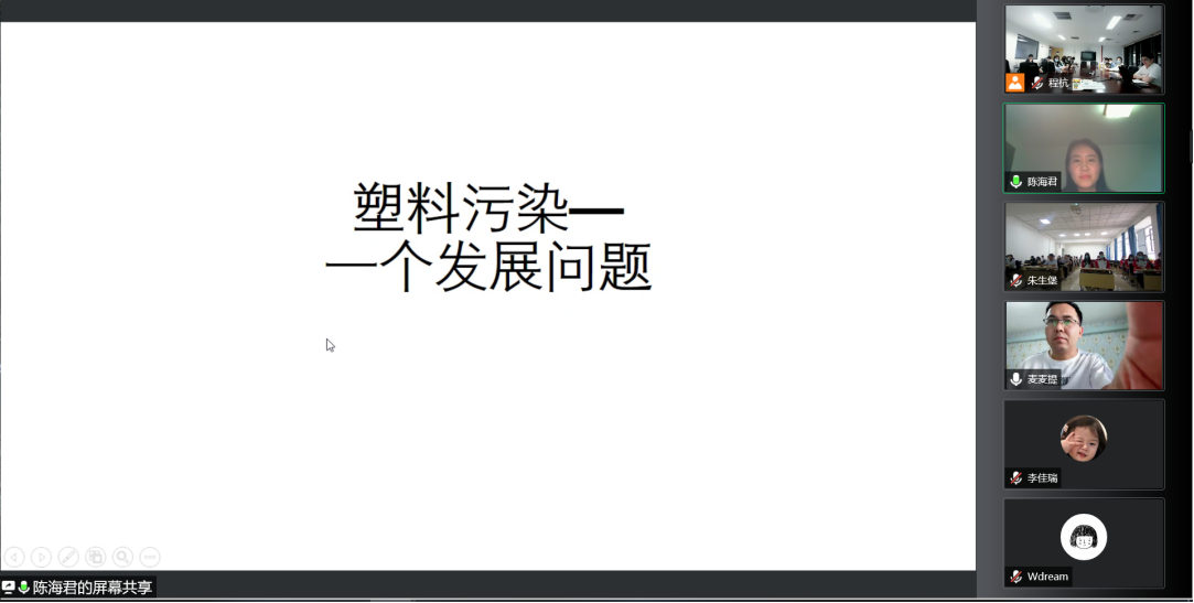 生态环境部国际合作司陈海君处长受邀介绍了塑料生产及污染的相关知识、国家战略以及校园“减塑”相关项目,期待老师同学们深入贯彻习近平生态文明思想,以专业背景、国家建设需要为切入点,践行环保理念,全面服务国家发展战略。2021级博士生第二党支部积极分子潘羽杰及郑茹就气候变暖的碳中和政策给我们其他生态环境政策等带来的红利和塑料全过程管理过程控制碳排放等相关问题与陈海君处长进行了咨询与探讨,陈处长表示碳中和政策带来的能源转型,也会促进产业转型和升级,同时国家在源头减量以及塑料污染治理等方面做出的许多努力正在进一步推动双碳目标的实现。