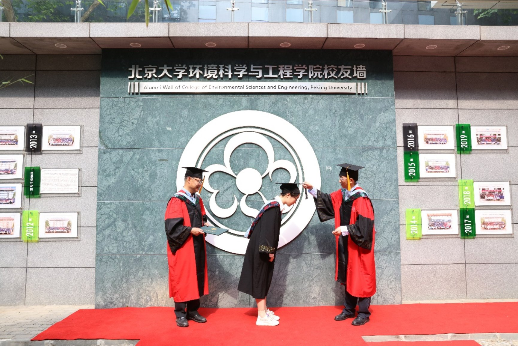 【院友墙前合影】