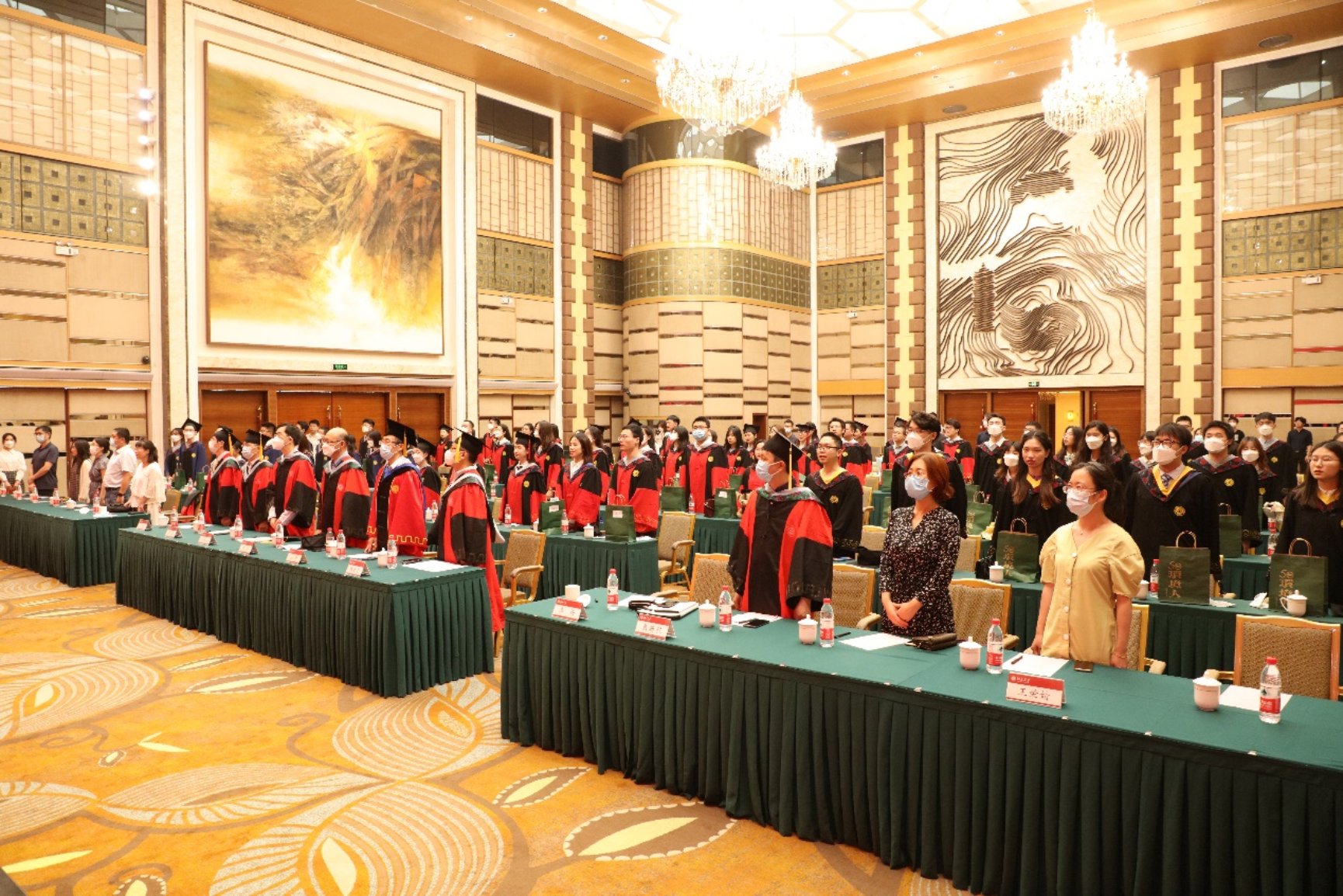 在庄严的国歌声中,毕业典礼拉开序幕。