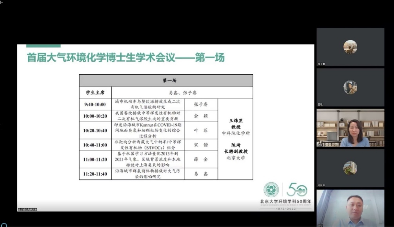 8月26日至27日,由北京大学环境科学与工程学院组织承办的首届全国大气环境化学博士生学术会议通过线上线下同步举行,为我国大气环境化学学科创立50周年献礼。本届大气环境化学博士生会议以“我国大气复合污染条件下的大气环境化学研究”为主题,旨在为博士生营造高起点、大范围、多领域的学术交流环境,促进多学科交叉融合,从而有利拓宽博士生的学术视野、激发学术热情、促进博士生整体培养质量不断提高。