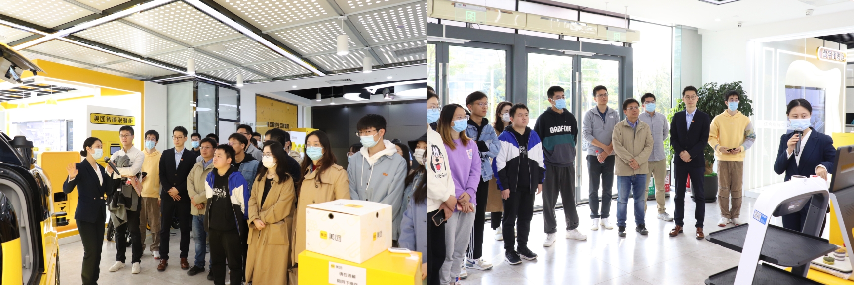 师生一行在美团综合指挥中心进行参观调研,深入了解美团公司的企业战略、科技突破、环保实践的发展历程,沉浸式体验美团大数据产品服务、无人机便捷快送、无人驾驶外卖车、菜品智能识别等高科技研发成果。在视觉、听觉和触觉等多方面的冲击下,同学们感受到我国企业的科技研发和社会服务方面的突飞猛进。