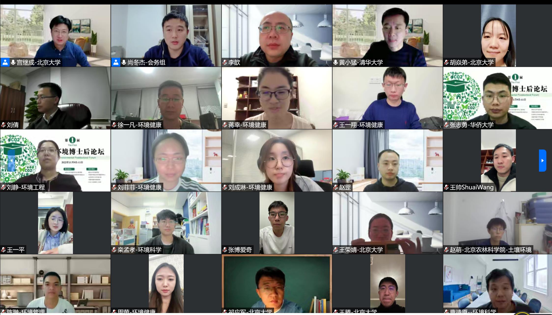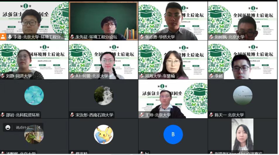 11月9日至11日,由全国博士后管理委员会办公室、中国环境科学学会、北京大学共同主办,北京大学环境科学与工程学院、中国环境科学学会青年科学家分会承办的第一届全国环境博士后论坛线上成功举行。本次论坛得到了清华大学环境学院、中国科学院生态环境研究中心、北京师范大学环境学院、中国环境科学研究院、IGAC中国青年工作组的大力支持。论坛吸引了来自全国多所高校和研究机构的百余名青年学者、博士生参加,围绕环境、健康与碳中和的前沿问题,展示最新成果,推动学科交叉发展与合作。