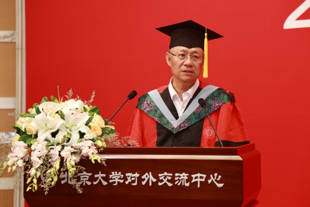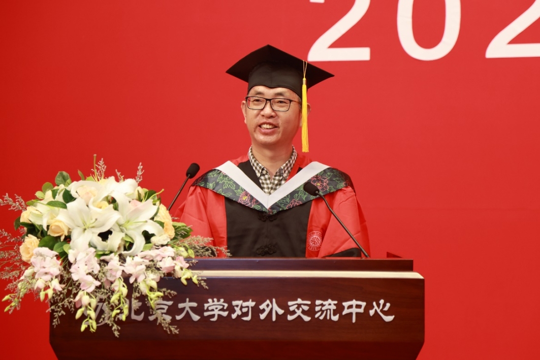 朱彤代表学院为毕业生送上热烈祝贺与临别寄语。他通过回顾北大环境学科50年的求索与发展历程,细数了学院一系列光辉成就。朱彤表示,当前“人与自然和谐共生”已被定义为中国式现代化的5大特征之一,绿色发展、生态文明建设等理念已深入人心、成为国家发展的重要理念。前不久,十四届全国人大常委会第三次会议表决通过决定,将8月15日设立为全国生态日。可以说在中国,环境学科迎来了辉煌的发展时机。然而身处世界“百年未有之大变局”,要实现联合国可持续发展目标,人类社会依然面临诸多困难、挑战、机遇与希望。朱彤希望同学们无论将来从事何种行业,都能继续秉承北大环境人敢为天下先、勇于创新的精神,向世界传递北大青年环境人的思考、责任与担当。学院将与在座的各位共同成长,祝愿毕业生们时刻把握正确方向和正确价值观,锚定目标、审时度势、努力向前,成长为更好的自己。