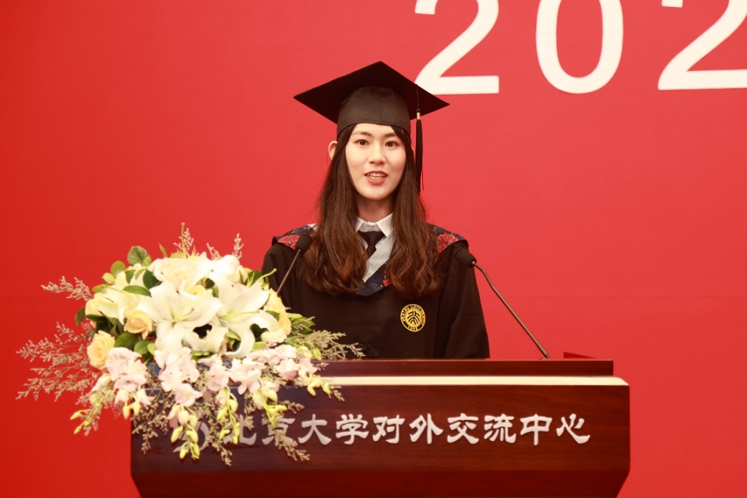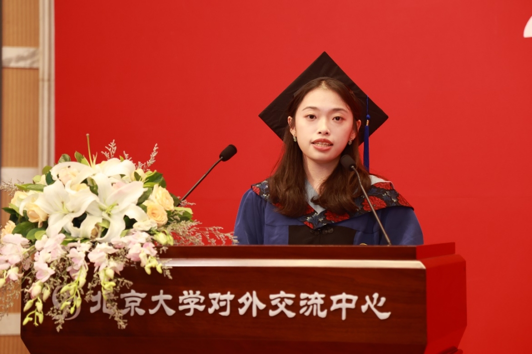在毕业生代表发言环节,2019级本科生夏千淞、2020级硕士研究生谢理淳、2019级博士研究生李金城先后分享了燕园生活的点滴与成长,表达了对母校和学院的深深眷恋以及对未来的殷殷期待。
